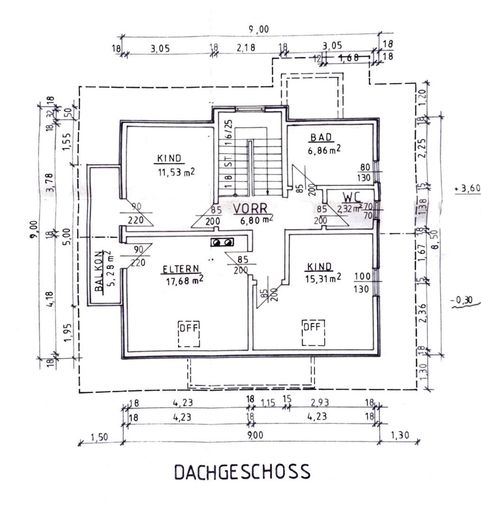 - Vorraum: Ermöglicht den Zugang zu allen Zimmern im Obergeschoss.