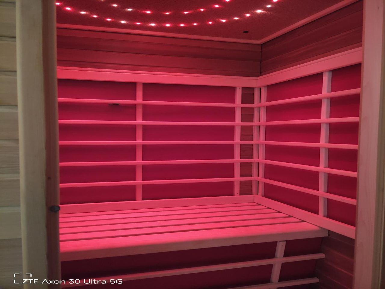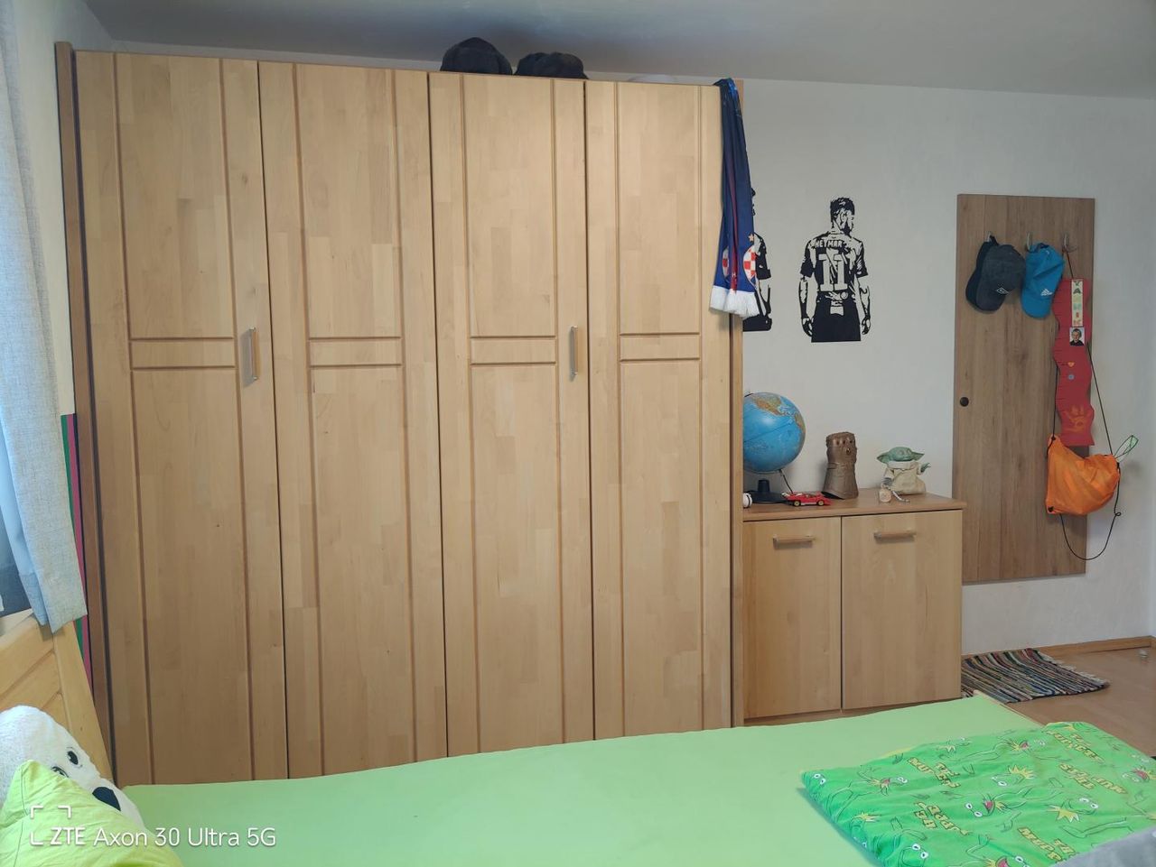Im Obergeschoss befinden sich drei weitere Schlafzimmer – jeweils mit eigenem Bad und WC – sowie ein zusätzlicher Küchenbereich, der sich hervorragend für Mehrgenerationenwohnen oder Gäste eignet. Vom Vorraum aus erreichen Sie eine moderne Infrarotkabine für entspannende Wellnessmomente. Zwei der Schlafzimmer verfügen über direkten Zugang zum Balkon mit Blick ins Grüne.