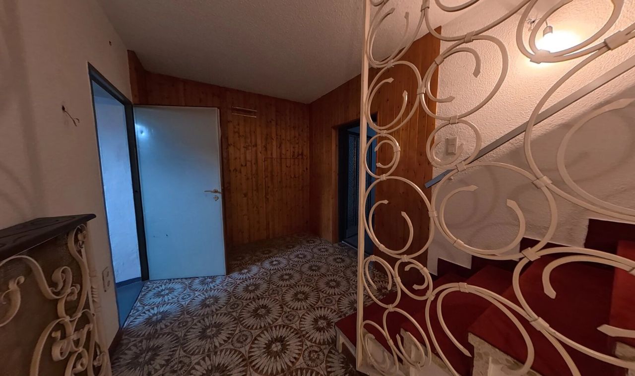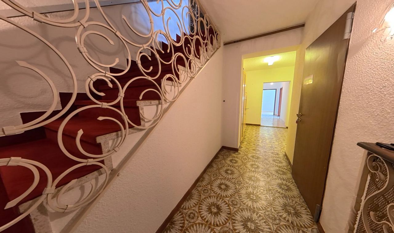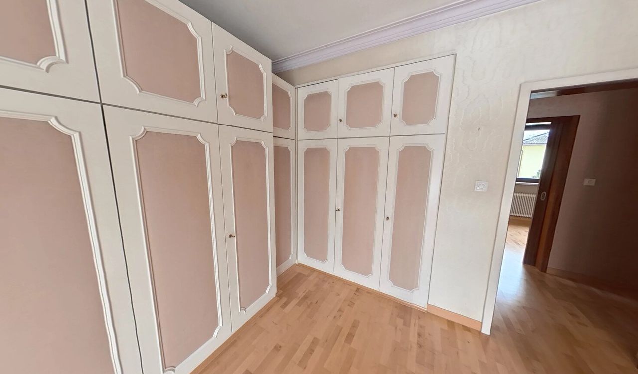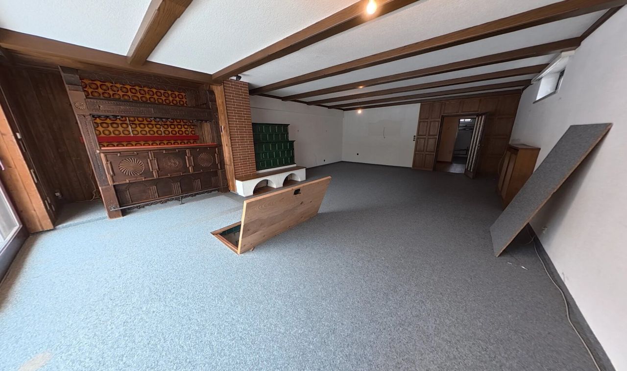 Der aktuell mit Bodenplatte bedeckte Indoor-Pool im voll ausgebauten, bewohnbaren Keller lädt ganzjährig zum Entspannen ein. Bei Bedarf lässt sich die Platte samt Trägern entfernen und eine Wohlfühloase samt Pool im eigenen Haus erschaffen. Mit sieben Wohnräumen, einer Garage mit Stellplätzen, Stauraum und Werkstatt sowie einem begehbaren Dachboden bietet das Haus vielseitige Möglichkeiten.