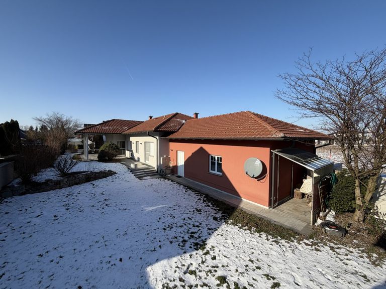SCHNELLBEZUG! Traum Bungalow mit Kachelofen überdachter Terrasse, Gartenoase, Wohnkeller und Doppelgarage im Laahfeld /Ansfelden