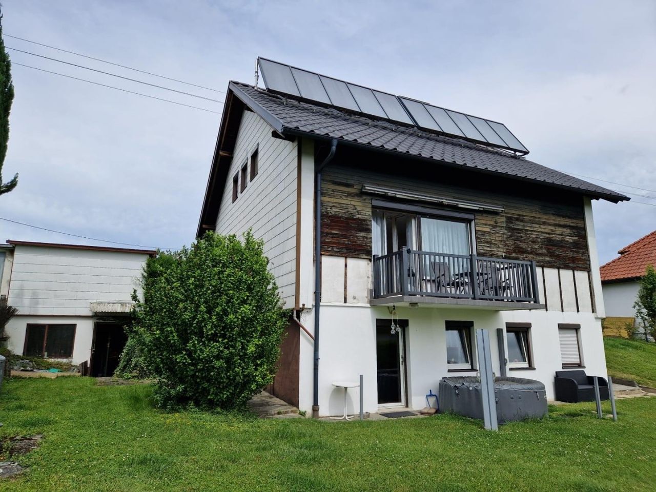 Es gibt eine kleine Einlegerwohnung im UG mit Zugang zum Garten wo es auch eine große Gartenhütte gibt und einen älteren Pool der aber in Betrieb genommen werden kann.