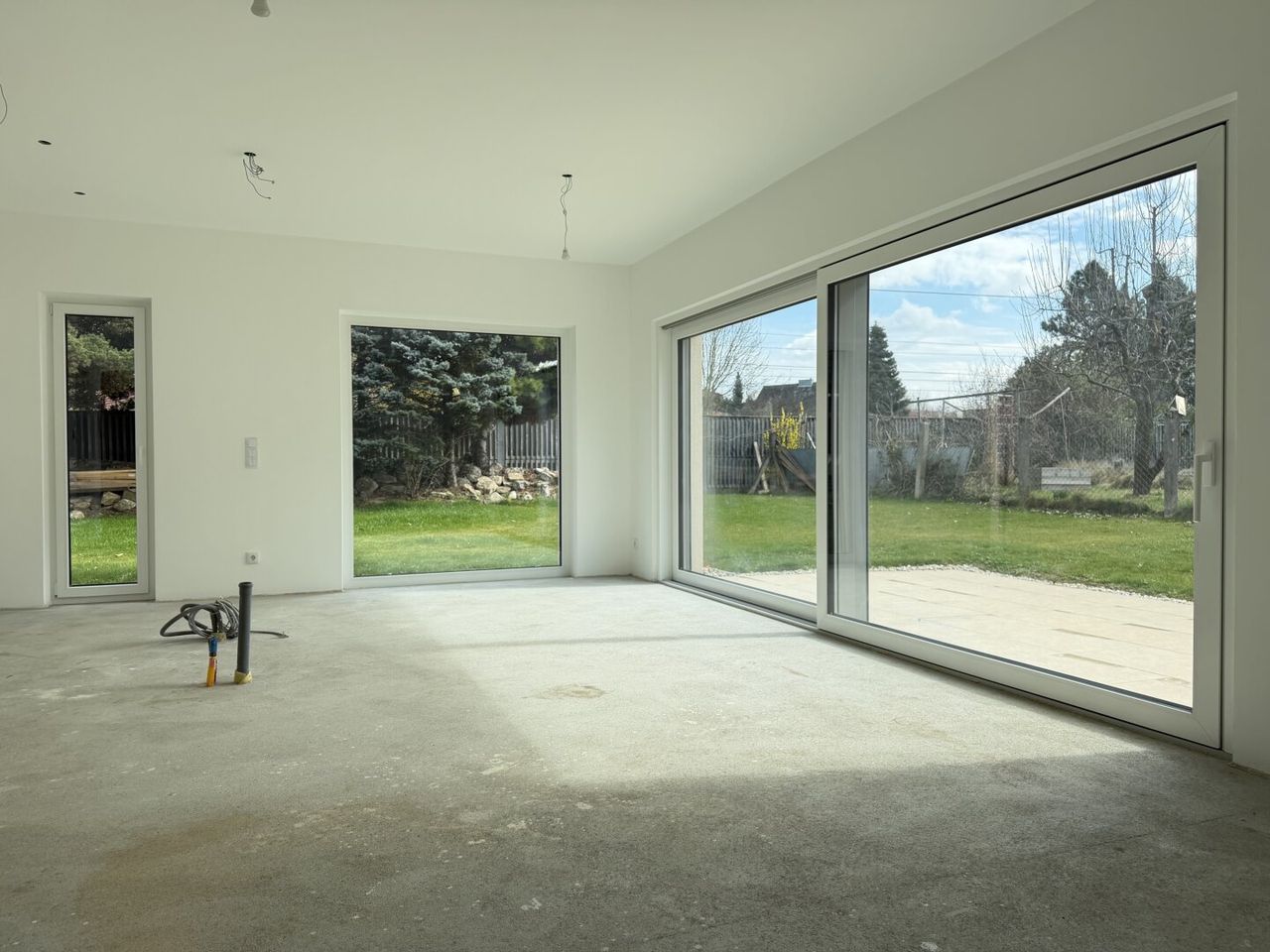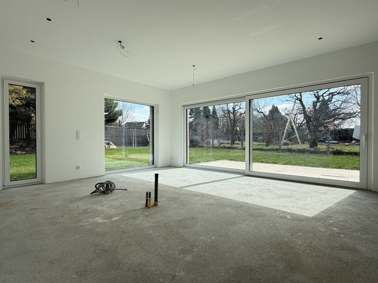 Bereits umgesetzt wurde eine moderne und energieeffiziente Haustechnik. Eine Fußbodenheizung sorgt für angenehme Wärme, betrieben durch eine Luftwärmepumpe, die bereits installiert und voll funktionsfähig ist. Hochwertige Alu-Kunststofffenster mit elektrischen Raffstores bieten optimalen Komfort, Energieeffizienz sowie angenehmen Sonnenschutz.