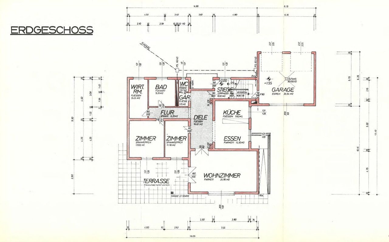 Zum Verkauf gelangt ein großzügiges Einfamilienhaus mit viel Potenzial, das auf rund 220 m² Wohnfläche verteilt über Erd- und Dachgeschoss sowie einem voll unterkellerten Bereich von ca. 110 m² vielseitige Nutzungsmöglichkeiten bietet. Im Erdgeschoss befinden sich eine Küche, ein Essbereich, ein geräumiges Wohnzimmer, ein Schlafzimmer, ein Arbeitszimmer, ein Ankleidezimmer, ein Badezimmer mit Badewanne und Dusche sowie ein separates WC. Das Dachgeschoss verfügt über drei weitere Zimmer, ein Badezimmer mit Dusche, ein separates WC und einen großzügigen Gangbereich. Der Keller umfasst den Heizraum, einen Vorratskeller, einen großen Partyraum mit Schwedenofen sowie einen Fitnessraum. Der Außenbereich bietet einen großzügigen Garten mit Pool und eine ca. 50 m² große Terrasse mit elektrischem Sonnenschutz. Für Fahrzeuge stehen eine Doppelgarage mit elektrischem Garagentor sowie zusätzliche Stellplätze vor dem Haus zur Verfügung. Das Haus befindet sich in einem renovierungsbedürftigen Zustand, bietet aber eine hervorragende Basis für individuelle Gestaltung und Modernisierung. Die Bäder und WC’s wurden vor rund einem Jahr erneuert. Geheizt wird mittels Gaskombitherme.