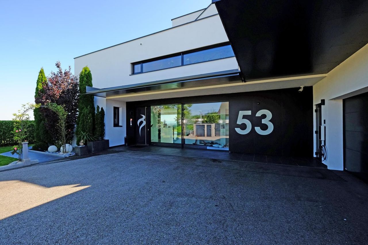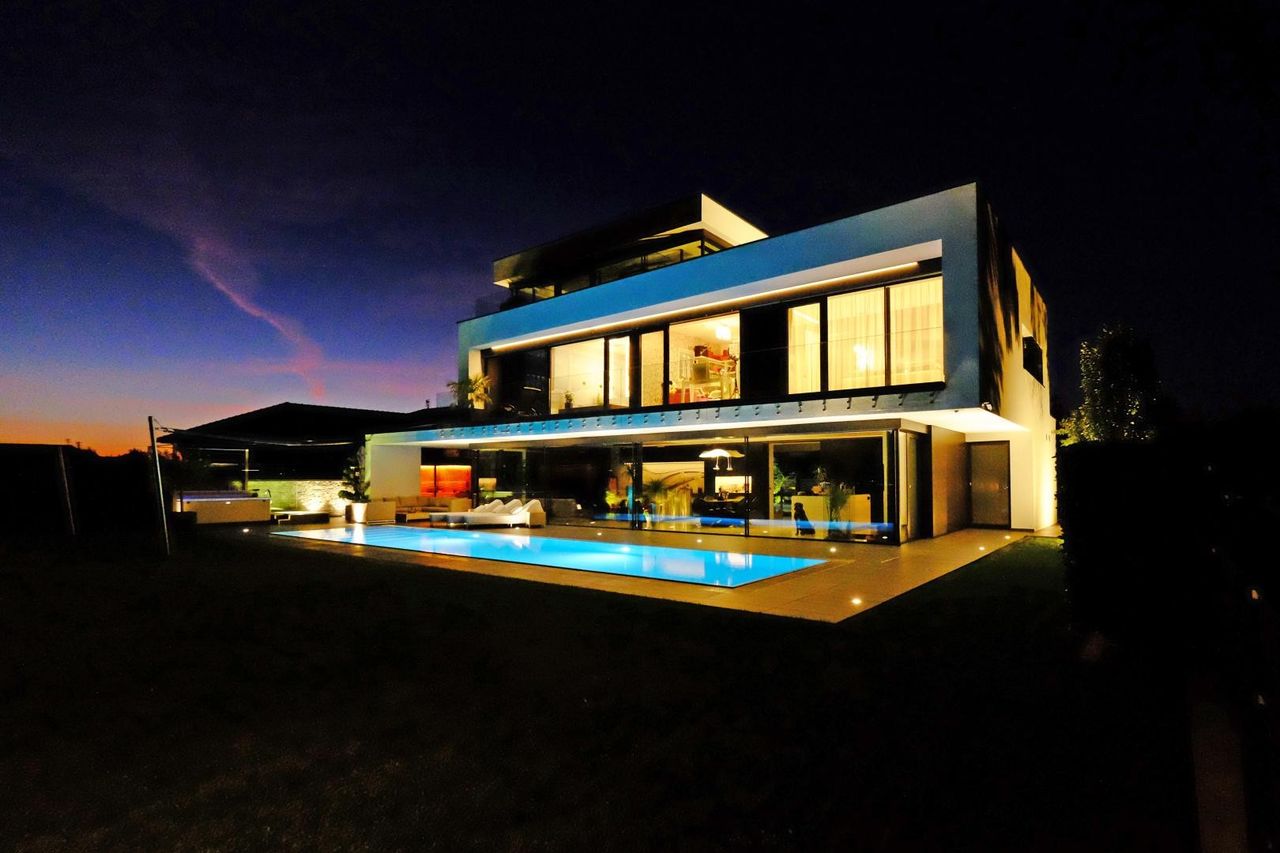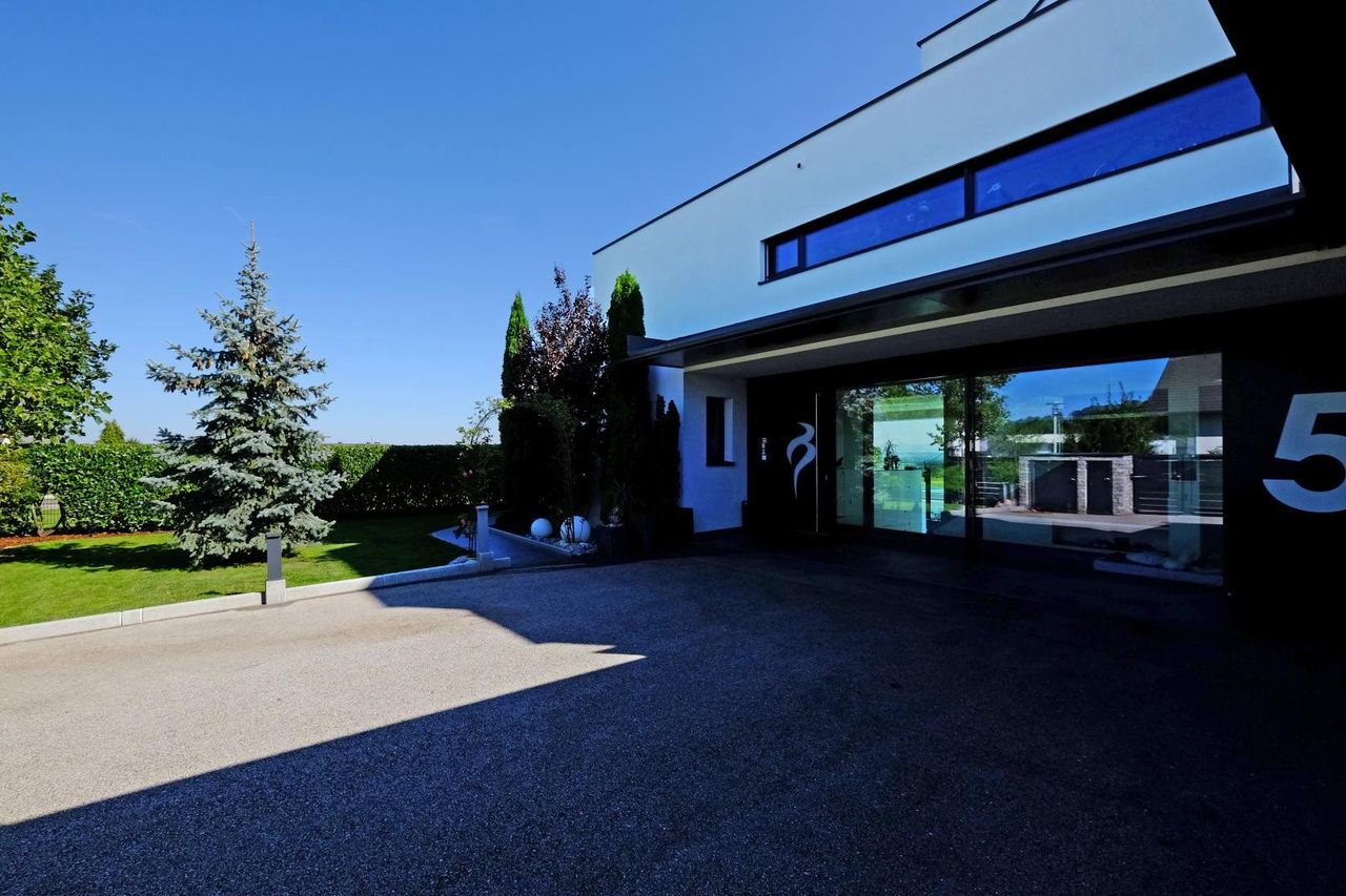 Dieser exclusive Fast - Neubau besticht zu allererst durch die Lage und den atemberaubenden Ausblick. Einmal eingetreten, kann man bereits erahnen, welchen Luxus dieses Domizil zu bieten hat. Durch die große Glastüre erhascht man hier bereits den Blick ins Interieur und in den Garten. Im gesamten Innen- u. Außenbereich dominieren die Farben Schwarz und Weiß. Auf Design wurde bei der Einrichtung höchstes Augenmerk gelegt. Mit der perfekt durchdachten Lichttechnik wurden wunderbare Akzente gesetzt. Der große, offene Wohn-Essbereich mit einer Küche, die höchsten Ansprüchen gerecht wird, lädt zum Kochen, Essen und Entspannen ein.Waschküche im EG Die gesamte Ebene ist Richtung Süden...