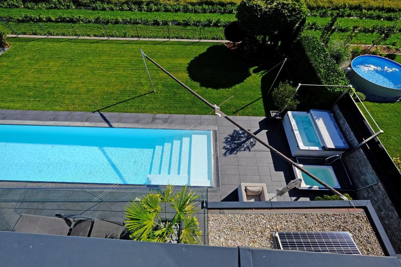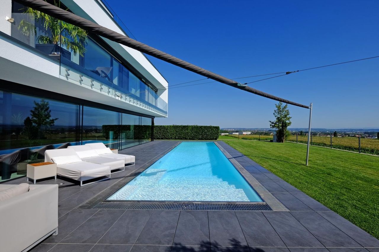 Der 14 Meter lange beheizbare . teilweise Niroster mit Massagedüsentmit ist einzigartig Salzwasserpool mit Pooldosieranlage. . Beschattet wird dieser Bereich mit einem wunderschönen Sonnensegel. Der nördliche gelegene Einfahrtsbereich ist sehr großzügig gestaltet. Die Garage bietet Platz für 3 PKWs. Zusäztlich 1 Carport für ein Elektroauto inkl. Ladestation.