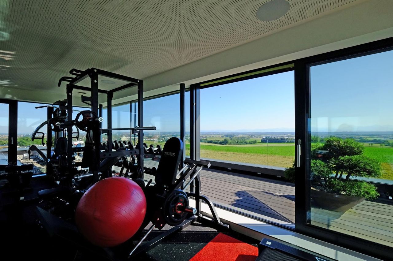 Das 2. Obergeschoß (ca. 30 m2) beherbergt das klimatisierte Fitnessstudio mit wunderbarer, südlich ausgerichteter Terrasse.