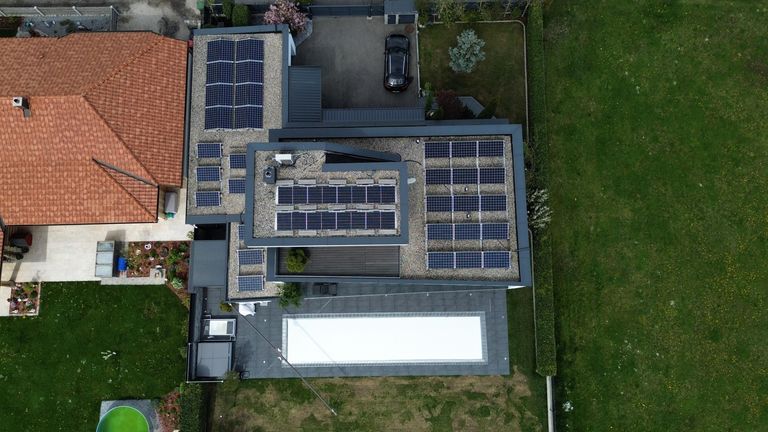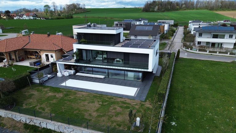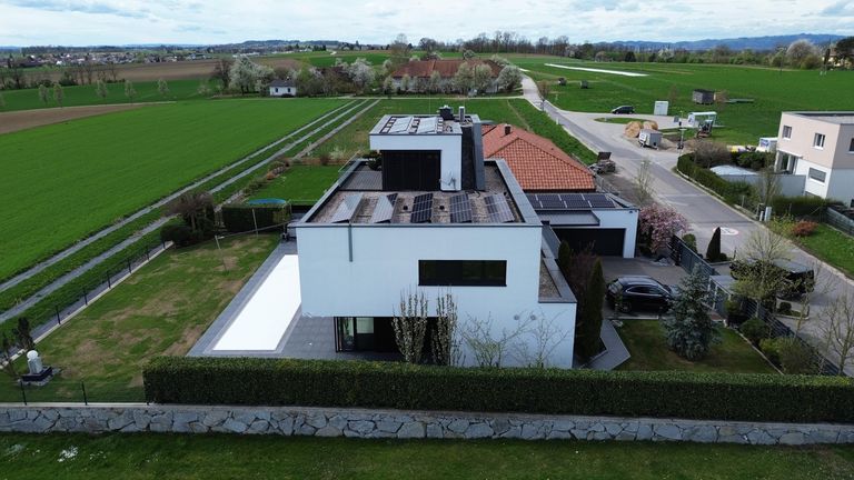 Es gibt auch eine Fotovoltaikanlage auf dem Dach (ca. 15 KW) die das Haus fast stromautark macht und einen Stromspeicher.