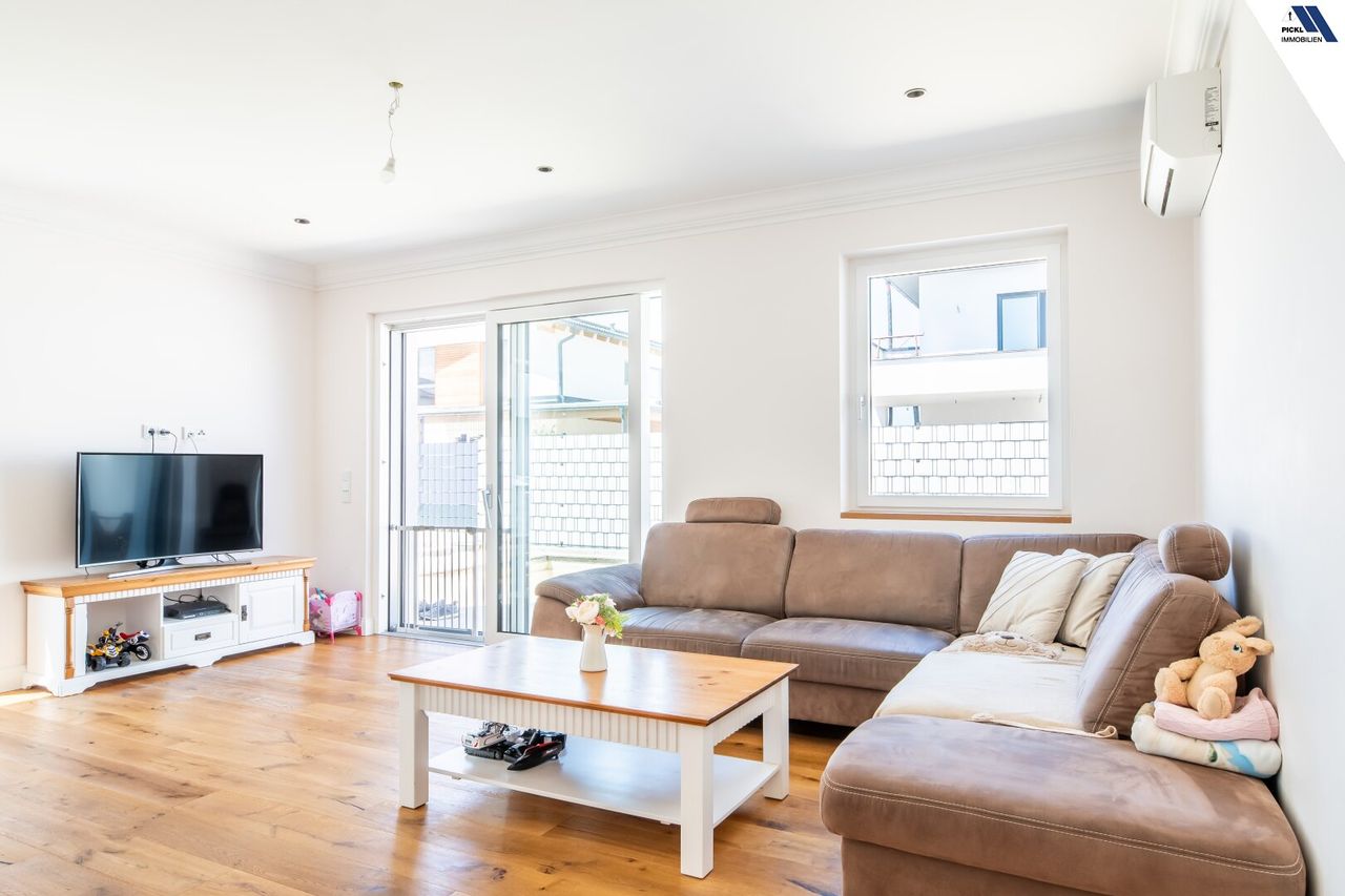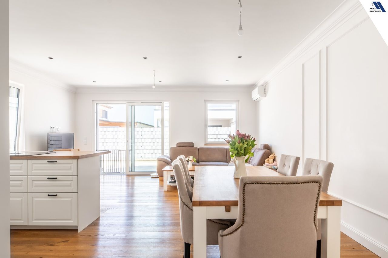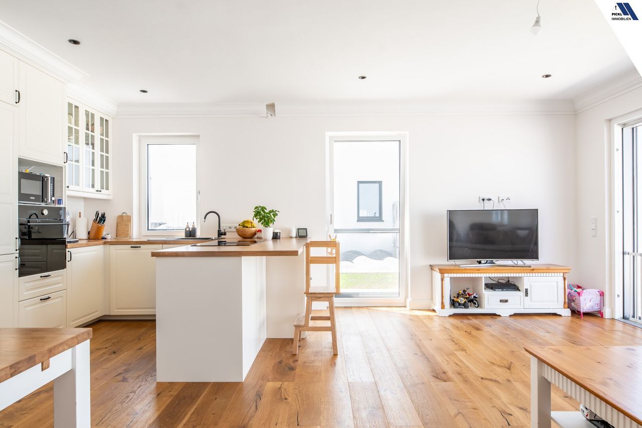 Hochwertiger Parkettboden verleiht den Wohnräumen eine warme und einladende Atmosphäre. Die moderne Einbauküche ist nicht nur funktional,...