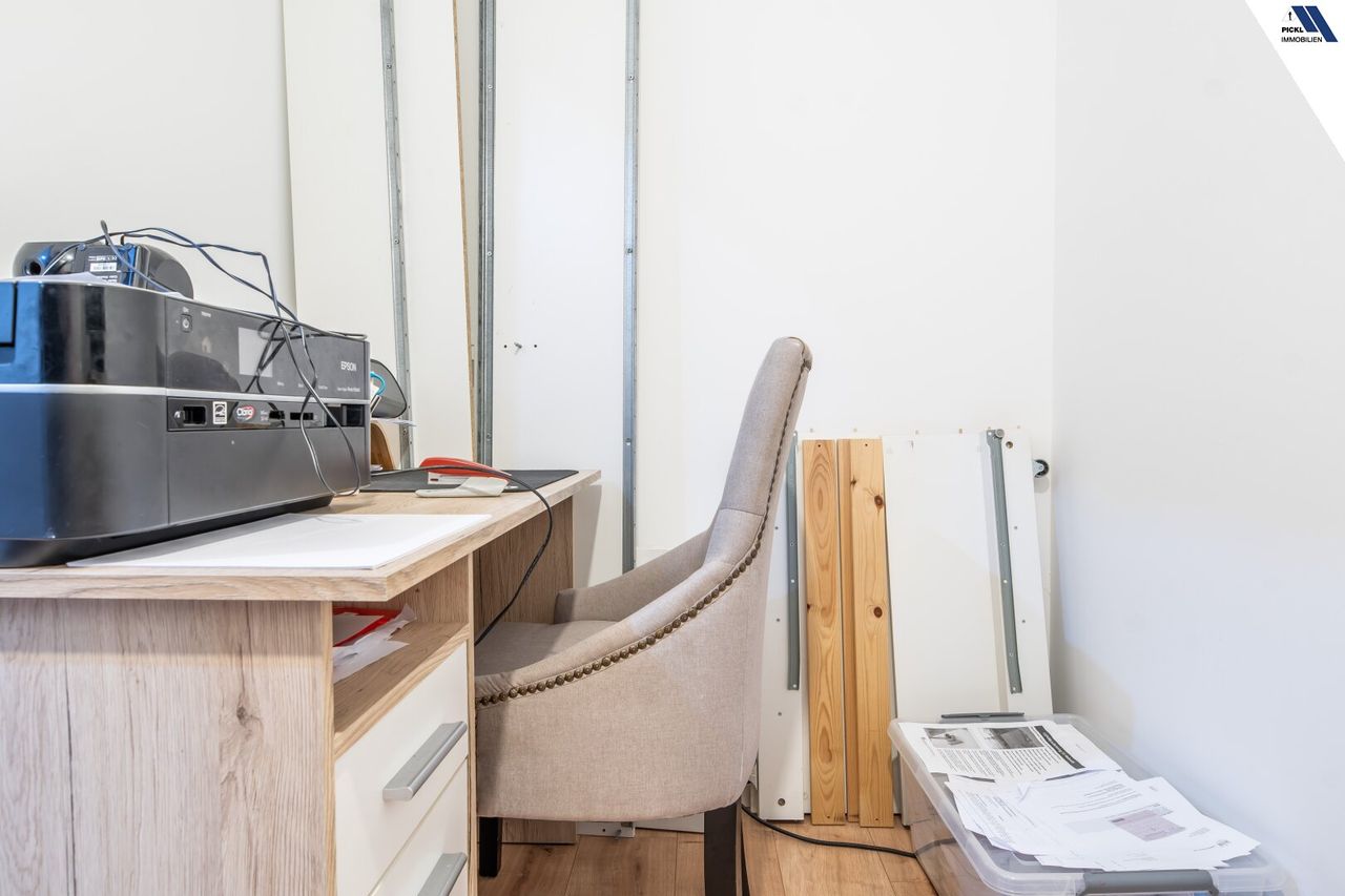 - Zimmer und Ausstattung: 4 SZ, oder optional 1 Büro im EG, 2 Badezimmer, 2 WCs, Parkettböden, moderne Einbauküche und ein Bad mit Fenster sowie ebenerdiger Dusche