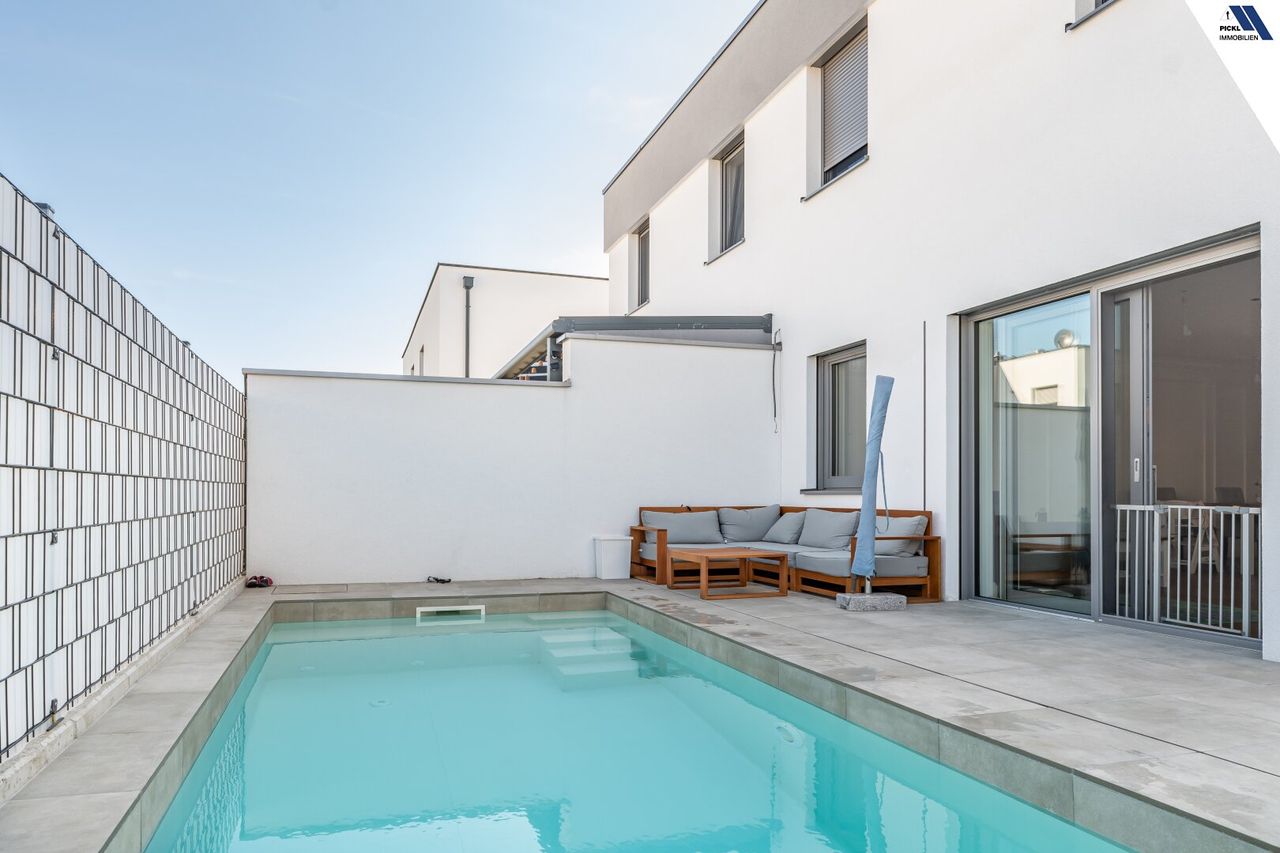 Neuwertige Doppelhaushälfte in Hörsching mit Pool, 3 Stellplätzen und hochwertiger Ausstattung