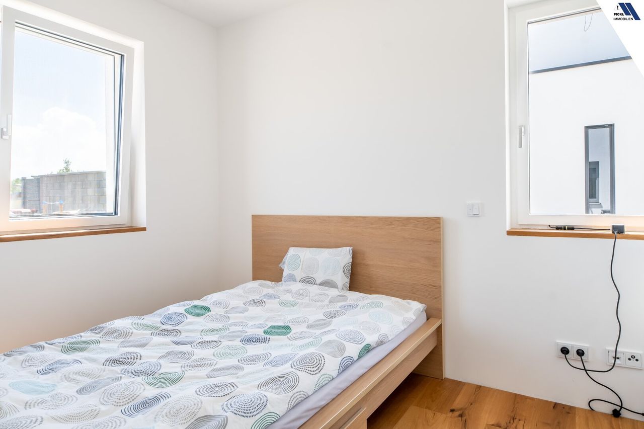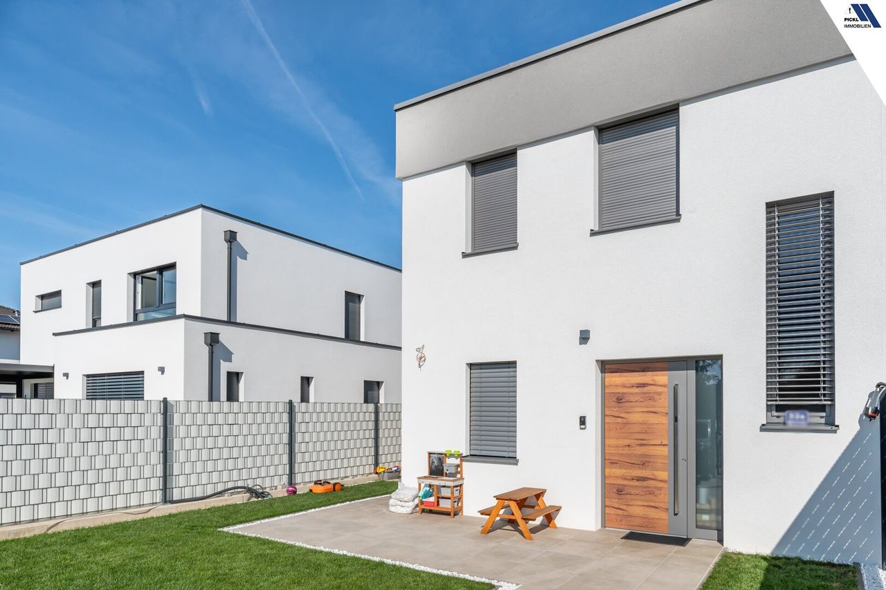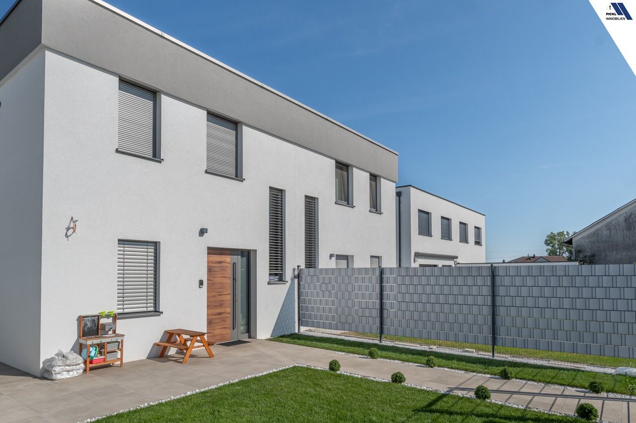 Willkommen in Ihrem neuen Zuhause in Hörsching, Oberösterreich! Diese neuwertige Doppelhaushälfte bietet auf großzügigen 123 m² Wohnfläche höchsten Komfort und modernes Wohnen in einer der begehrtesten Lagen der Region.