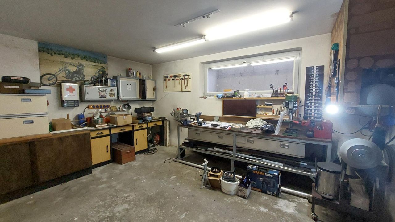 verfügt über eine Wohnfläche von 142m² sowie einen Vollkeller mit Garage von 143m².