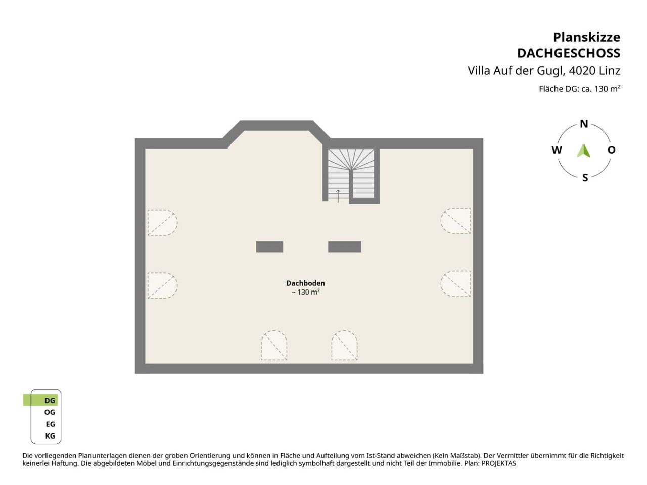- einem ausbaubaren Dachboden mit bereits ausgeführter Bodendämmung und Estrich mit rund 130 m² Nutzfläche.