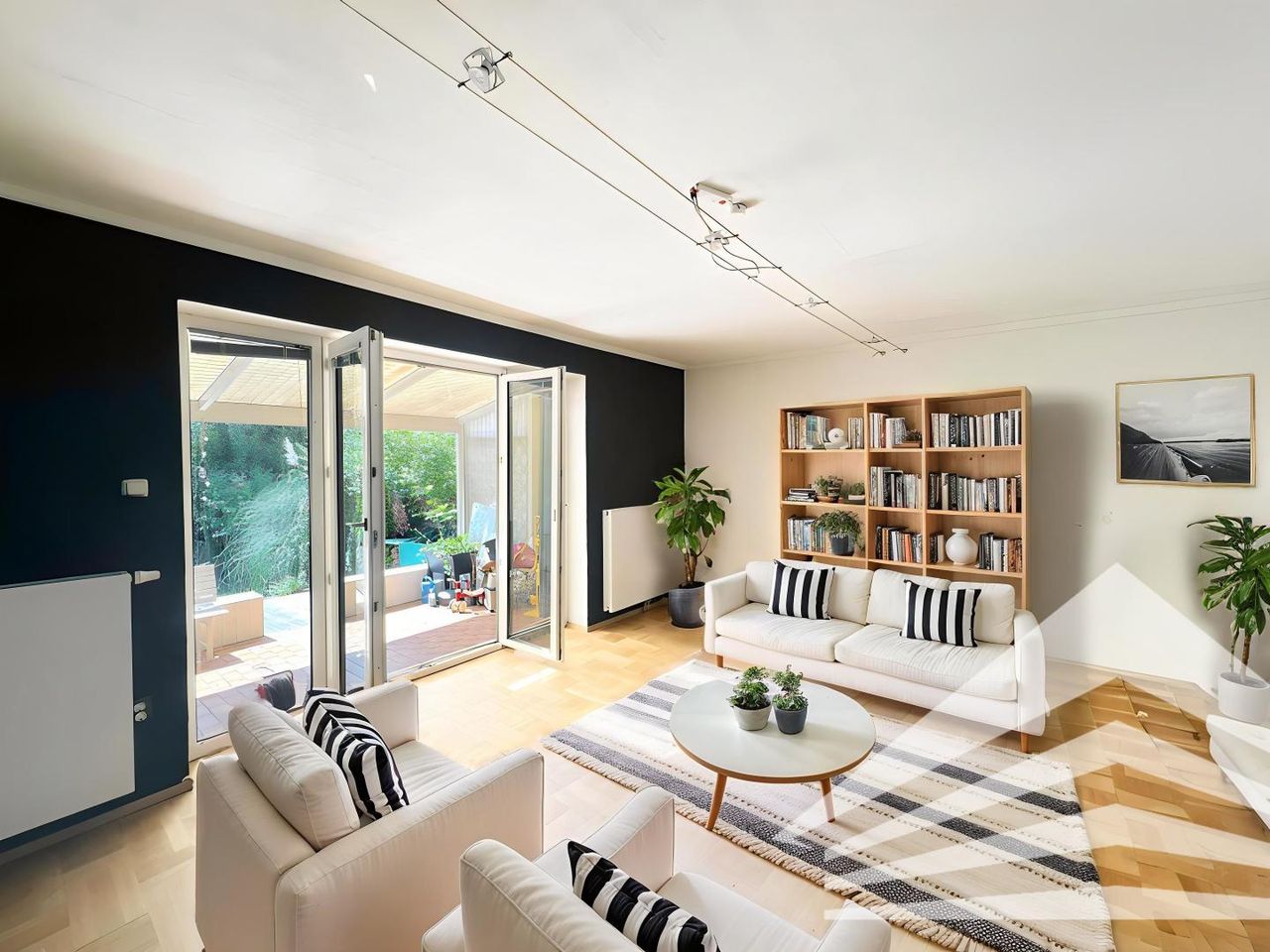 - Wohnzimmer inkl. Kamin mit Zugang zur Terrasse und Garten