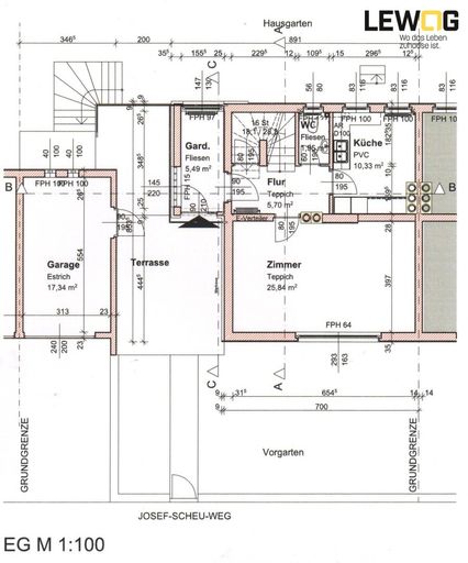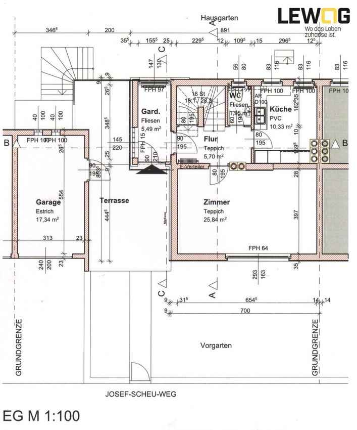 Die Raumaufteilung umfasst im Erdgeschoss einen Windfang, eine separate Küche, ein Wohn-Esszimmer und ein teilsaniertes WC....