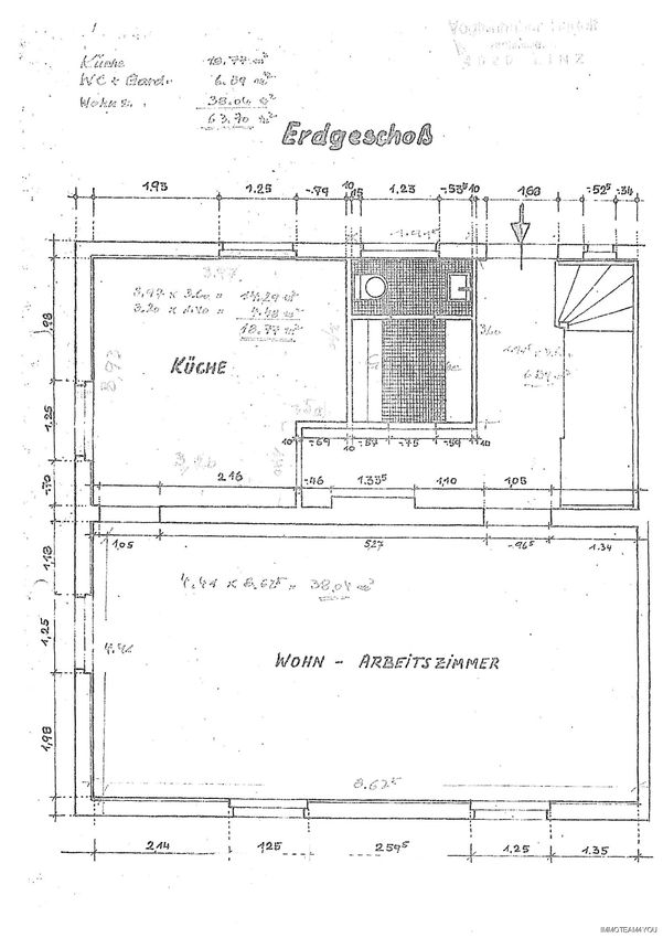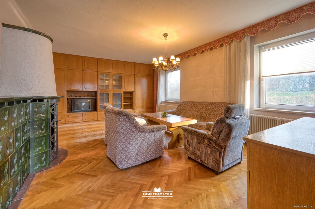 Im Erdgeschoss erwartet Sie ein großzügiges, über 38 m² großes Wohnzimmer mit Kaminofen (Holz/Kohle) und weitläufigen Fensterflächen. Der angrenzende, über 18 m² große Küchenbereich ist zur sonnigen Westseite ausgerichtet und bietet ausreichend Platz für gemeinsame Mahlzeiten. Ergänzt wird das Erdgeschoss durch einen Sanitärbereich mit WC und Waschbecken, einen einladenden Eingangsbereich mit Garderobe sowie eine Speis.