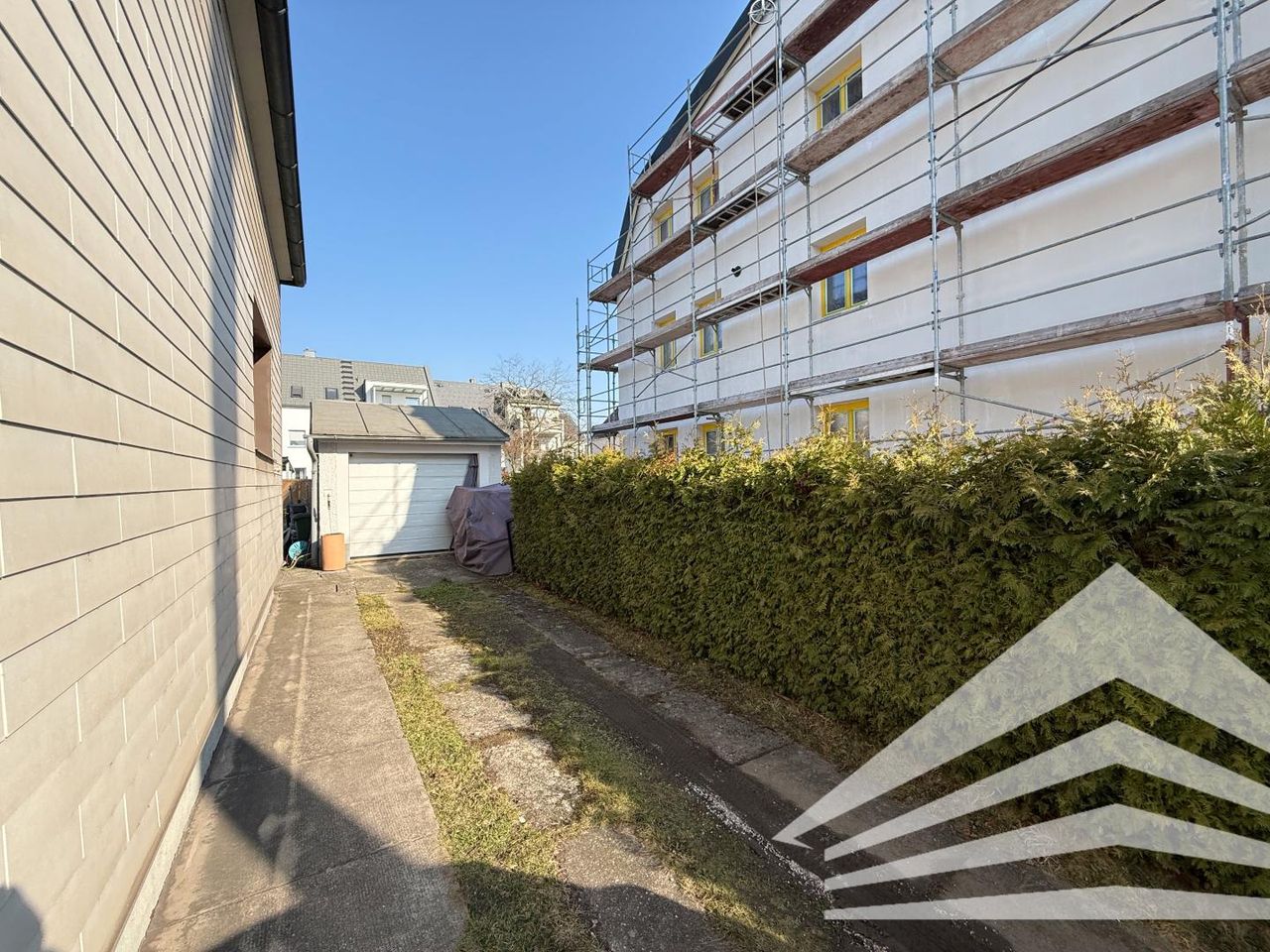 - Einfahrt mit elektrischem Tor, Garage mit elektrischem Rolltor und zusätzlich haben bis zu 3 Autos Platz in der Zufahrt