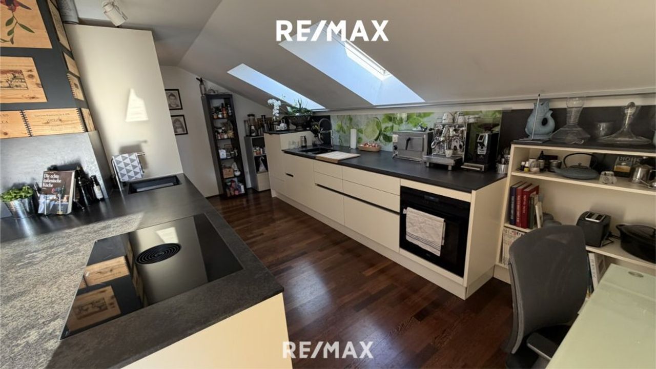 Eines der Highlights ist sicher der 2013 realisierte "Penthouse-Ausbau", der unter der Planung und Leitung eines bekannten Architekten umgesetzt wurde. Hier entstand eine moderne Wohneinheit, die einen spannenden architektonischen Kontrast zur soliden Grundstruktur bildet. Großzügige Glasflächen sorgen für lichtdurchflutete Räume und eröffnen beeindruckende Blickachsen. Die offene Gestaltung nach oben verleiht der Wohnung ein außergewöhnliches Raumgefühl und unterstreicht den zeitgemäßen Charakter.