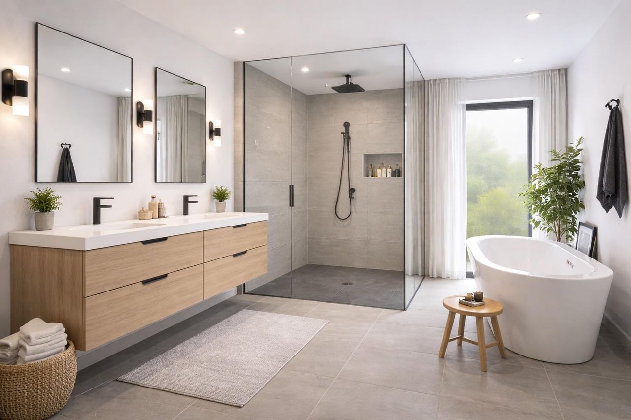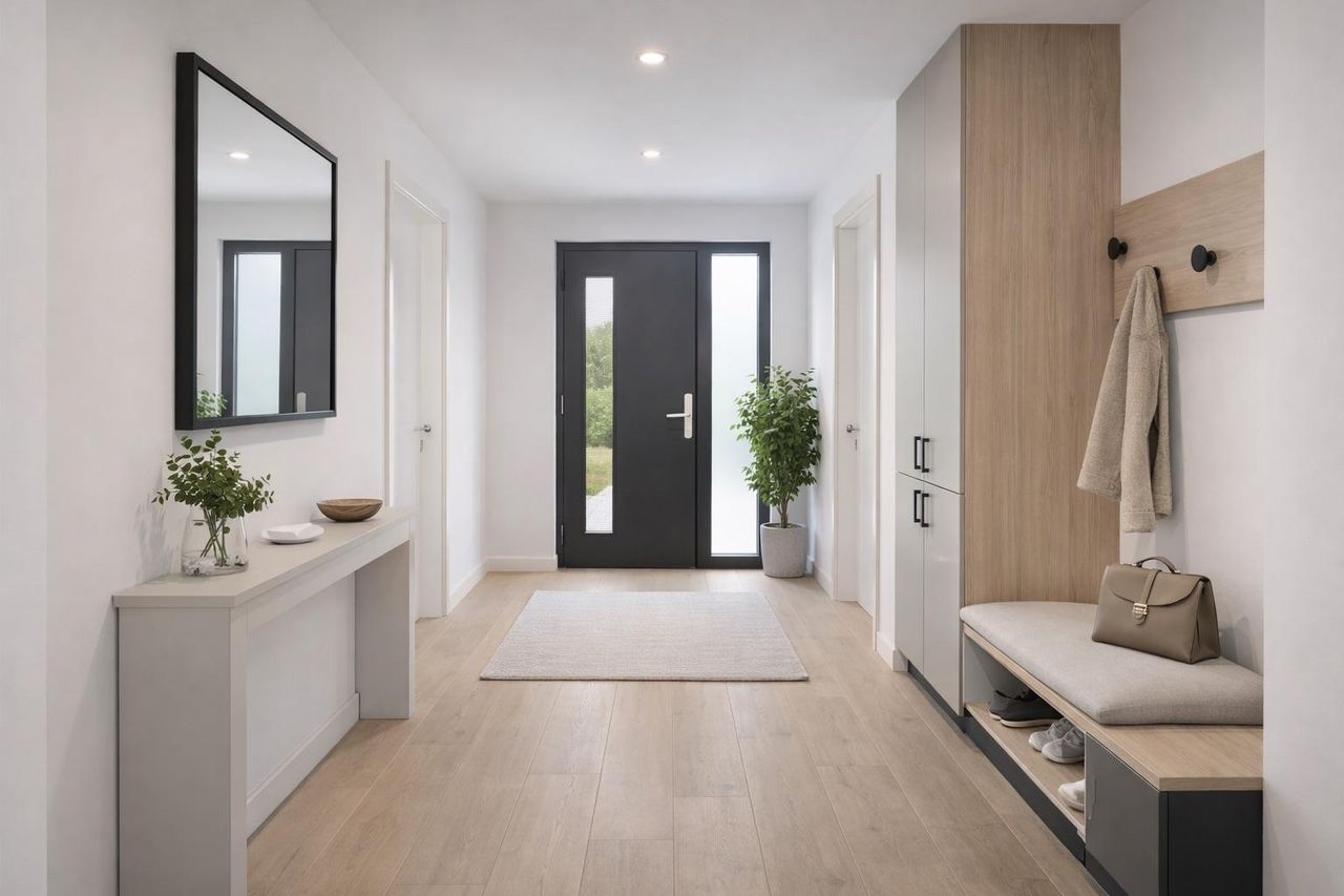 Luft-Wärmepumpen für energieeffizientes Heizen, die optional auf Kühlung erweitert werden können. Die Fußbodenheizung sorgt für eine angenehme Wärme im ganzen Haus und die großen, hochwertigen Qualitätsfenster mit 3-Scheiben-Isolier-Wärmeschutzverglasung tragen zur Energieeffizienz bei.