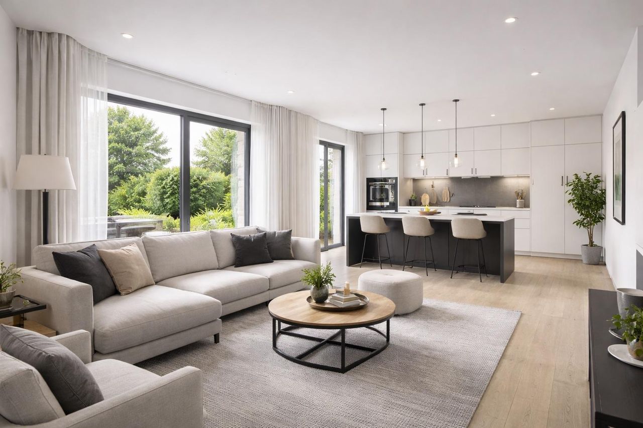 Luft-Wärmepumpen für energieeffizientes Heizen, die optional auf Kühlung erweitert werden können. Die Fußbodenheizung sorgt für eine angenehme Wärme im ganzen Haus und die großen, hochwertigen Qualitätsfenster mit 3-Scheiben-Isolier-Wärmeschutzverglasung tragen zur Energieeffizienz bei.
