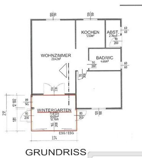 RÄUMLICHKEITEN: Wintergarten, Wohn- Esszimmer, Küche, Schlafzimmer, Bad mit WC; Abstellraum von außen begehbar