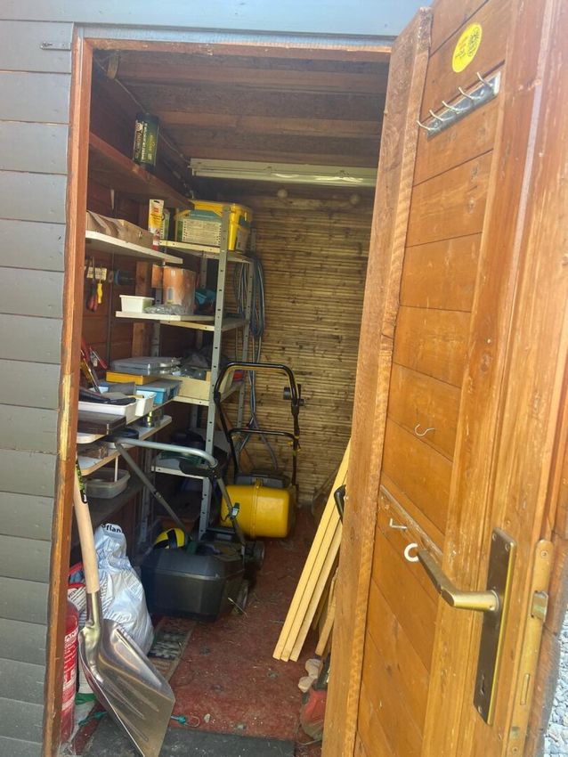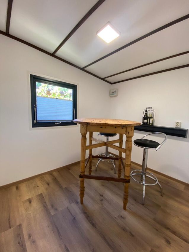 Durchdachte 36,6 m² sind aufgeteilt in Küche, Wohnzimmer, Schlafzimmer, Bad mit WC und Dusche, Abstellraum/ Küchenerweiterung, Partyraum (zu einem Kinderzimmer umfunktionierbar), Terrasse und Gartengerätehütte.