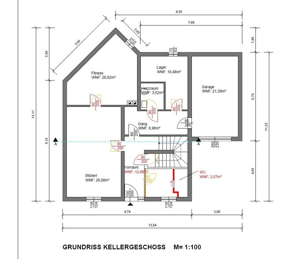 Der ca. 28 m² große beheizte Kellerraum mit Tageslicht bietet vielfältige Nutzungsmöglichkeiten – ob als Therapie- / Praxisbereich oder zusätzlicher Wohnraum. Ein weiterer beheizter, ca. 20 m² großer Raum kann für Hobby, Fitness, Sauna (Wasseranschluss für Dusche vorhanden) etc. genutzt werden.