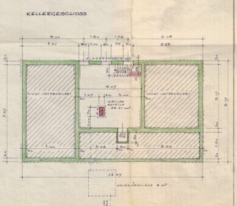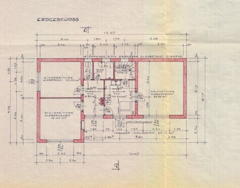 ERDGESCHOSS: Veranda, Vorraum, Küche mit Essplatz, Wohnzimmer, Schlafzimmer, Kinderzimmer, Bad, WC;