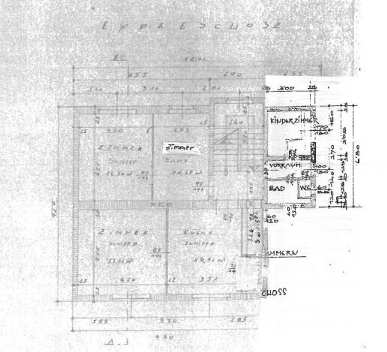 ERDGESCHOSS: Vorraum, Küche mit Essplatz und Wohnzimmer, Speis, Schlafzimmer, 2 Zimmer, Dusche, WC;
