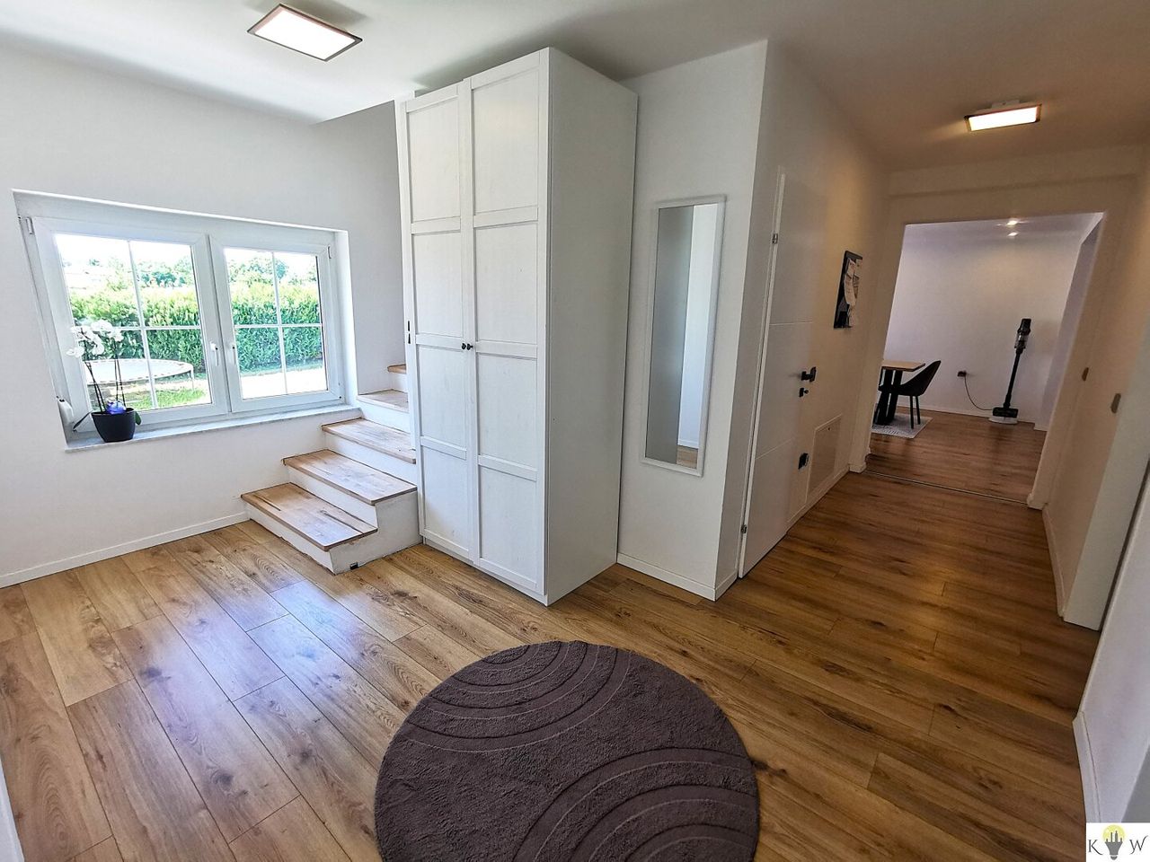 Dieses charmante Haus aus den 1970er Jahren wurde ab 2018 umfassend kernsaniert und präsentiert sich heute in modernem Glanz. Erhalten blieben lediglich die Grundmauern, ein Teil der Fenster von 1997, sowie der sorgfältig geprüfte Dachstuhl – alles andere wurde von Grund auf erneuert.