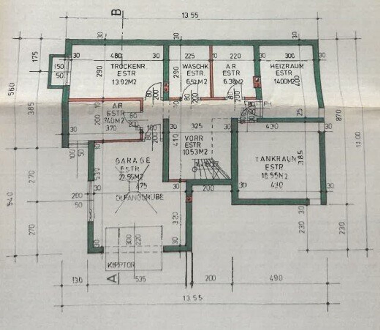 KELLER: Vollkeller mit Garage, Werkstatt, Heizraum, etc,