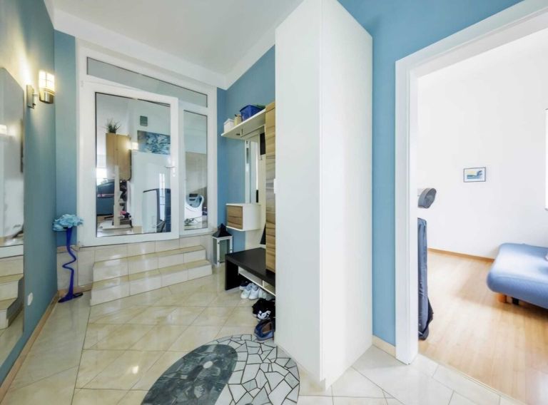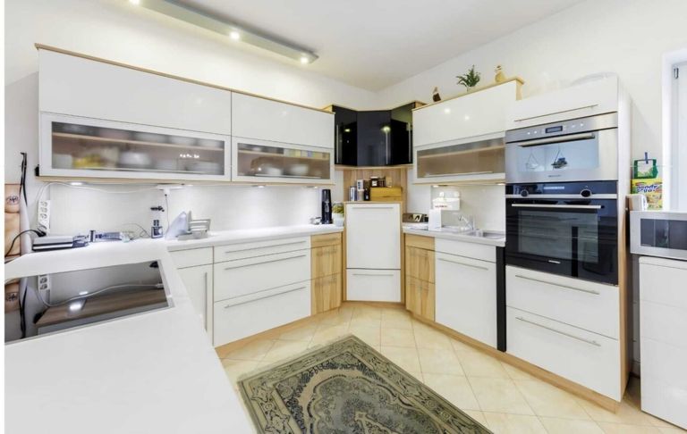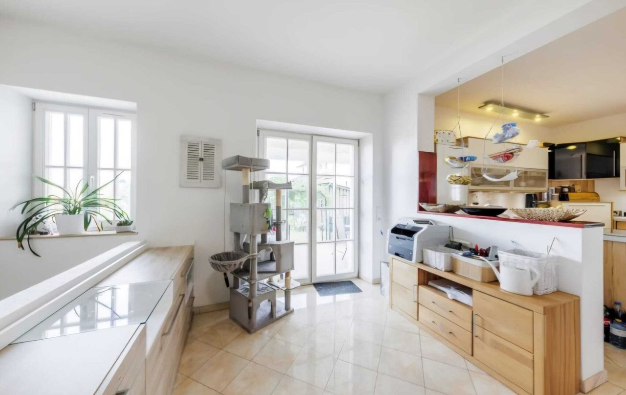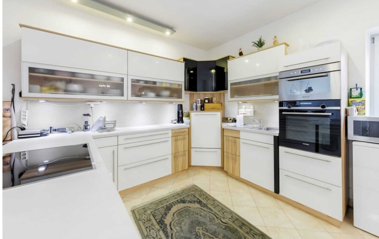 Zur Haustüre gelangen Sie von der Straße über einen überdachten, mit italienischen Säulen getragenen Eingangsbereich. Sie betreten den geschmackvoll verfliesten Vorraum mit ausreichend Platz für Ihre Garderobe. Zwei Zimmer, links und rechts, bieten sich als Büro oder Gästezimmer an. Anschließend gelangen Sie in den imposantem Wohnsalon mit offener Küche, angeschlossenem Esstisch und einem gemütlichen Kamin-Eck. Die neuwertige Masseinbauküche der Firma Peter Max ist mit hochwertigen Geräten komplett ausgestattet. Linkerhand befinden sich zwei Schlafzimmer, beide mit kleinem Balkon, sowie ein komplett eingerichtetes Bad (Whirlpool, Badewanne, Dusche, WC, Bidet Waschbecken, Fenster). Das zweite Bad mit Whirlpool-Badewanne und bodengleicher Dusche, WC sowie ein extra WC befinden sich rechterhand. Raumhöhen zwischen 2,65 m und 3,15 m.