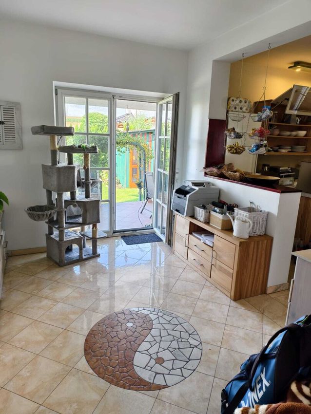 Die Qualität des Hauses kann sich sehen lassen: 50 cm Ziegel mit Zement- und Edelputzschicht, außen Thermoputz, Innen 25 cm Wienerbergerziegel, Kaminmauerwerk für die Pelletsheizung sowie für den offenen Kamin, Böden mit Bambusparkett verlegt, durchgehend Fußbodenheizung. Auch innen wurden nur beste Materialien verwendet und die Anordnung der Räume und Fenster bzw. Türen folgen dem Feng-Shui-Prinzip - ein Zuhause zum Wohlfühlen. Das ganze Haus ist mit hochwertigen, 3 - fach verglasten Fenstern, Jalousien sowie Insektienschutz ausgstattet.