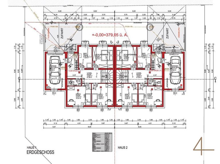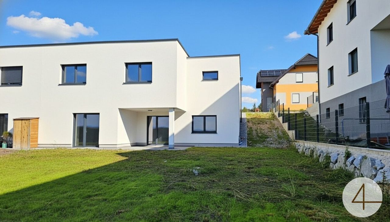 Im Erdgeschoss erwarten Sie ein einladender Vorraum, ein Badezimmer, ein separates WC, ein Schlafzimmer sowie zwei Kinderzimmer, die vielfältig nutzbar sind – etwa als Gäste- oder Arbeitsräume. Eine Garage mit direktem Zugang bietet zusätzlichen Komfort und Stauraum.