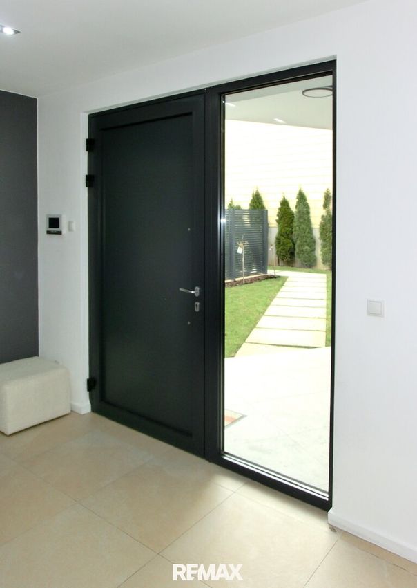 Eine Kombination aus Weiß mit Grau, ergänzt durch großzügige Glasflächen, verleiht diesem Haus moderne Eleganz, die durch minimalistische Details unterstrichen wird. Der Stil fast asketisch, jedenfalls geschmackvoll unterstrichen.