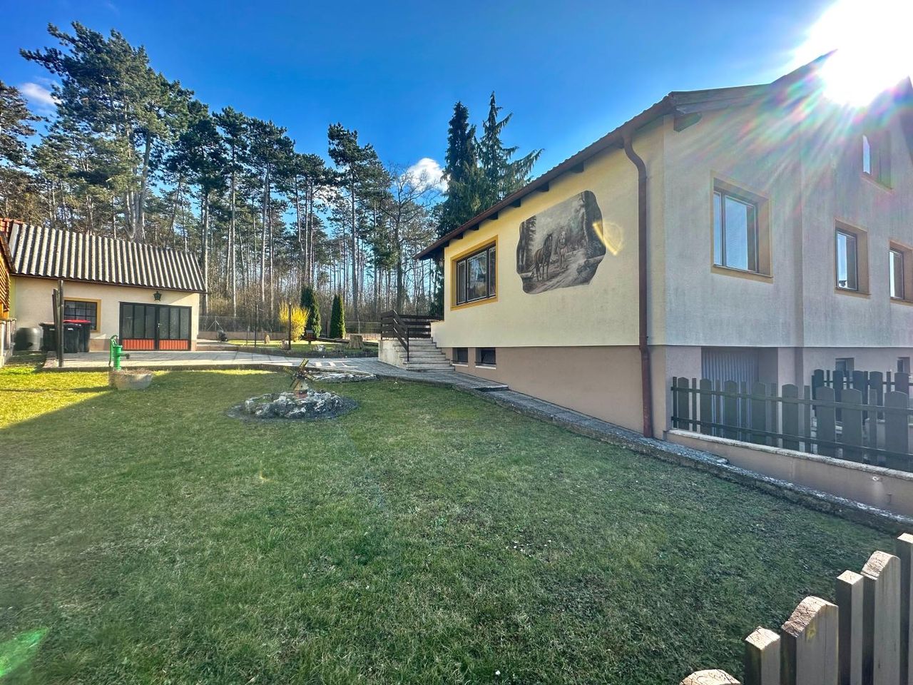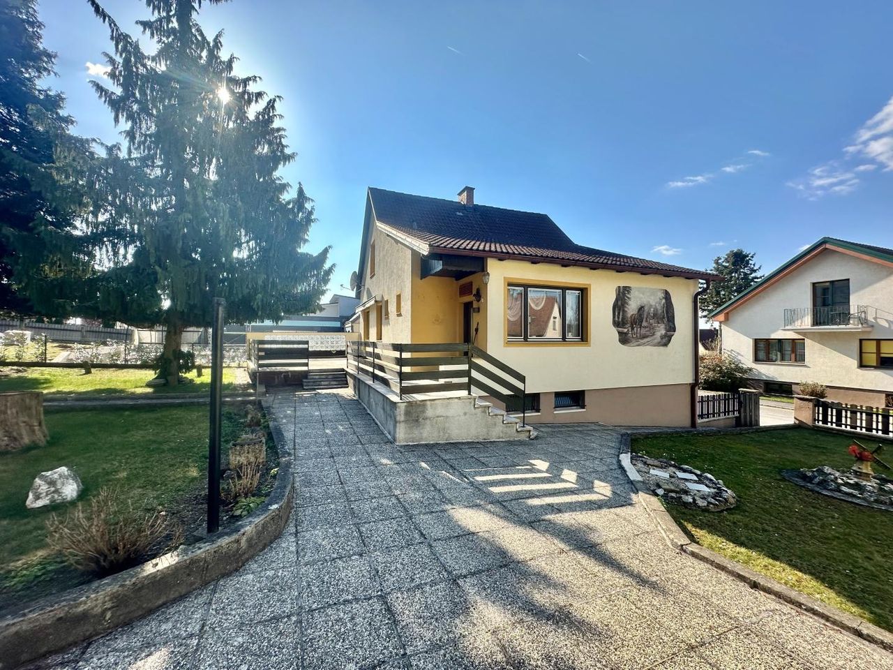Das im Jahr 1952 errichtete Haus überzeugt durch seinen gepflegten Zustand, eine durchdachte Raumaufteilung sowie einen sonnigen Garten mit direktem Anschluss an den Totenhauerwald und herrlichem Ausblick ins Grüne.