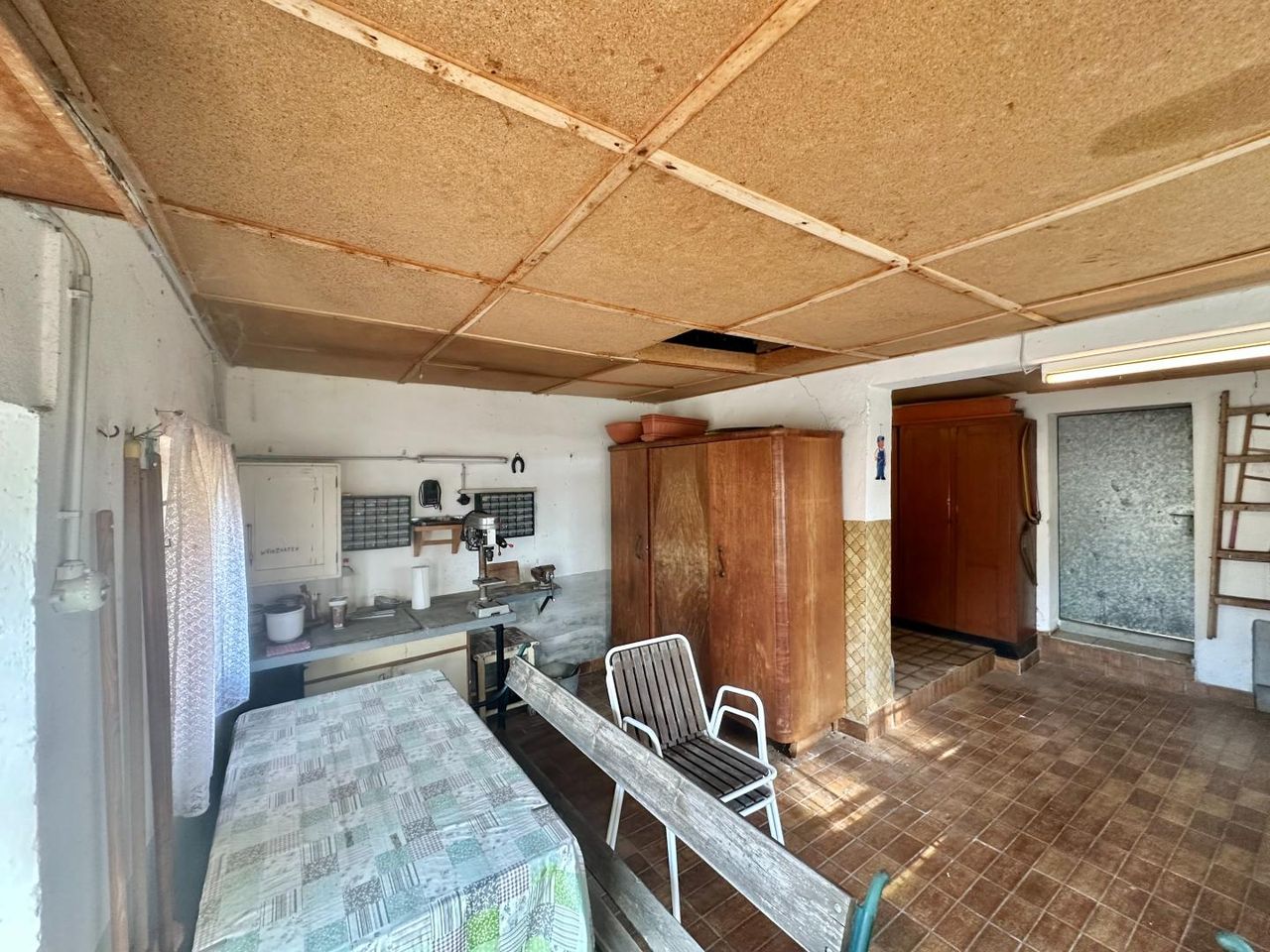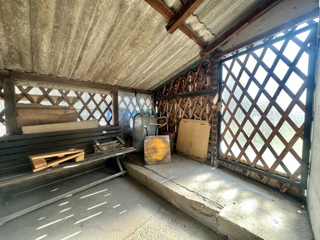Ein großer Geräteschuppen mit Starkstromanschluss sowie eine zweite Zufahrtsmöglichkeit über den Totenhauerweg mit Zugang zum hinteren Grundstücksteil runden das Angebot ideal ab.