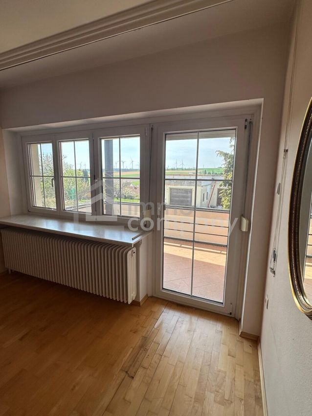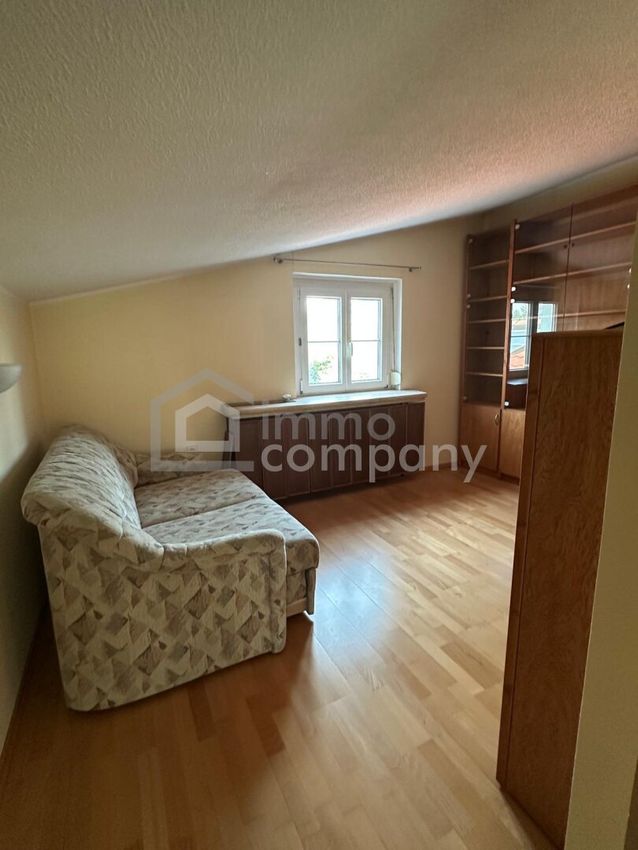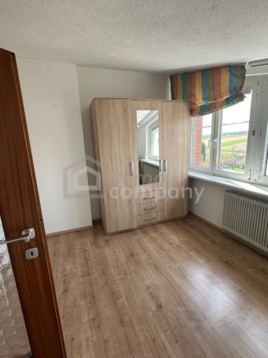Obergeschoss: Das Obergeschoss verfügt über ein großzügiges Schlafzimmer mit Zugang zum Balkon, der einen schönen Blick ins Grüne bietet. Highlight ist der begehbare Kleiderschrank, der für zusätzlichen Komfort sorgt.