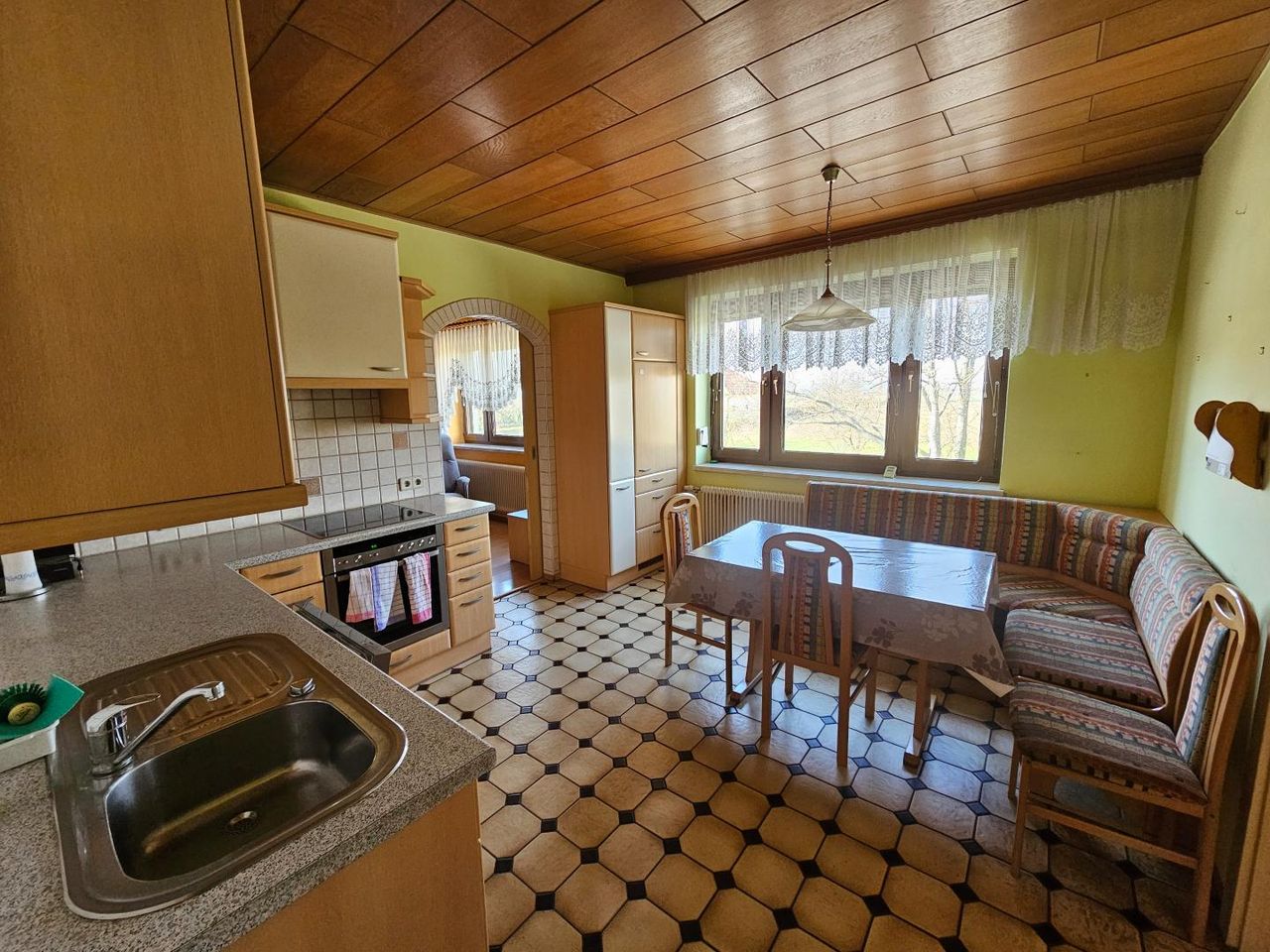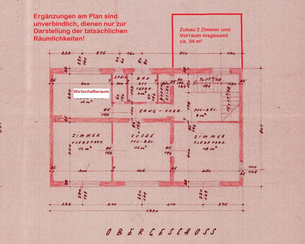 Im Obergeschoß findet man Küche, Wirtschaftsraum, Abstellraum, WC, Bad mit Dusche und 4 Zimmer.