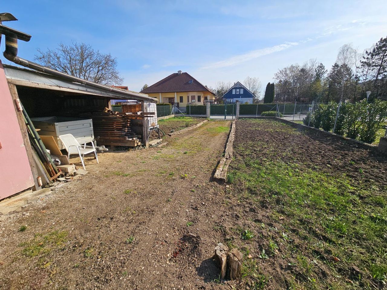Es steht auf ca. 645 m² Eigengrund, der Grund kann auch von hinten befahren werden.