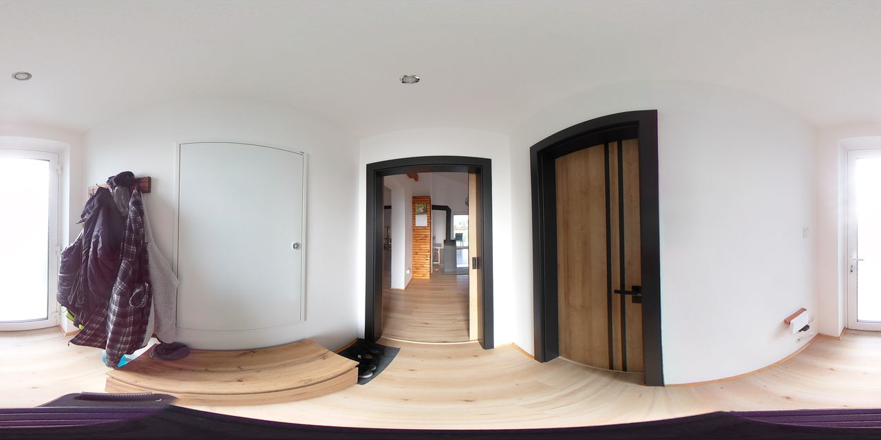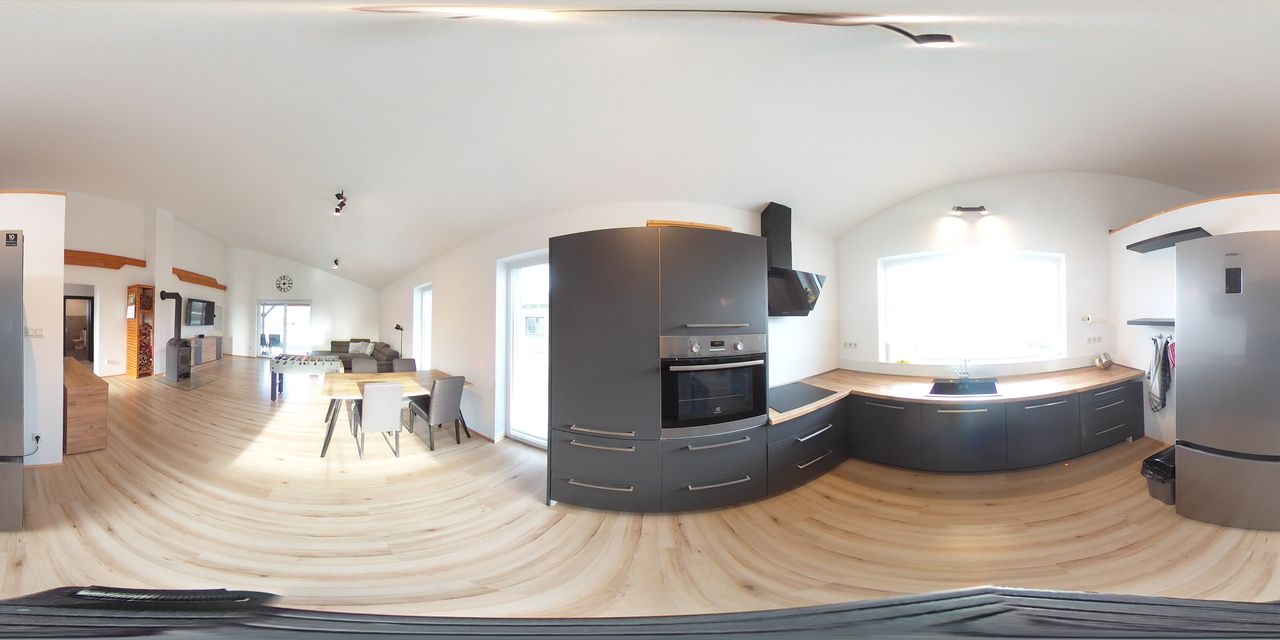 Bereits beim Betreten empfängt Sie ein weitläufiger Wohn- und Essbereich mit hohen Decken und großen Fensterflächen, die für eine optimale Lichtdurchflutung sorgen. Die offene Gestaltung des Raumes vermittelt ein Gefühl von Weite und Gemütlichkeit zugleich.