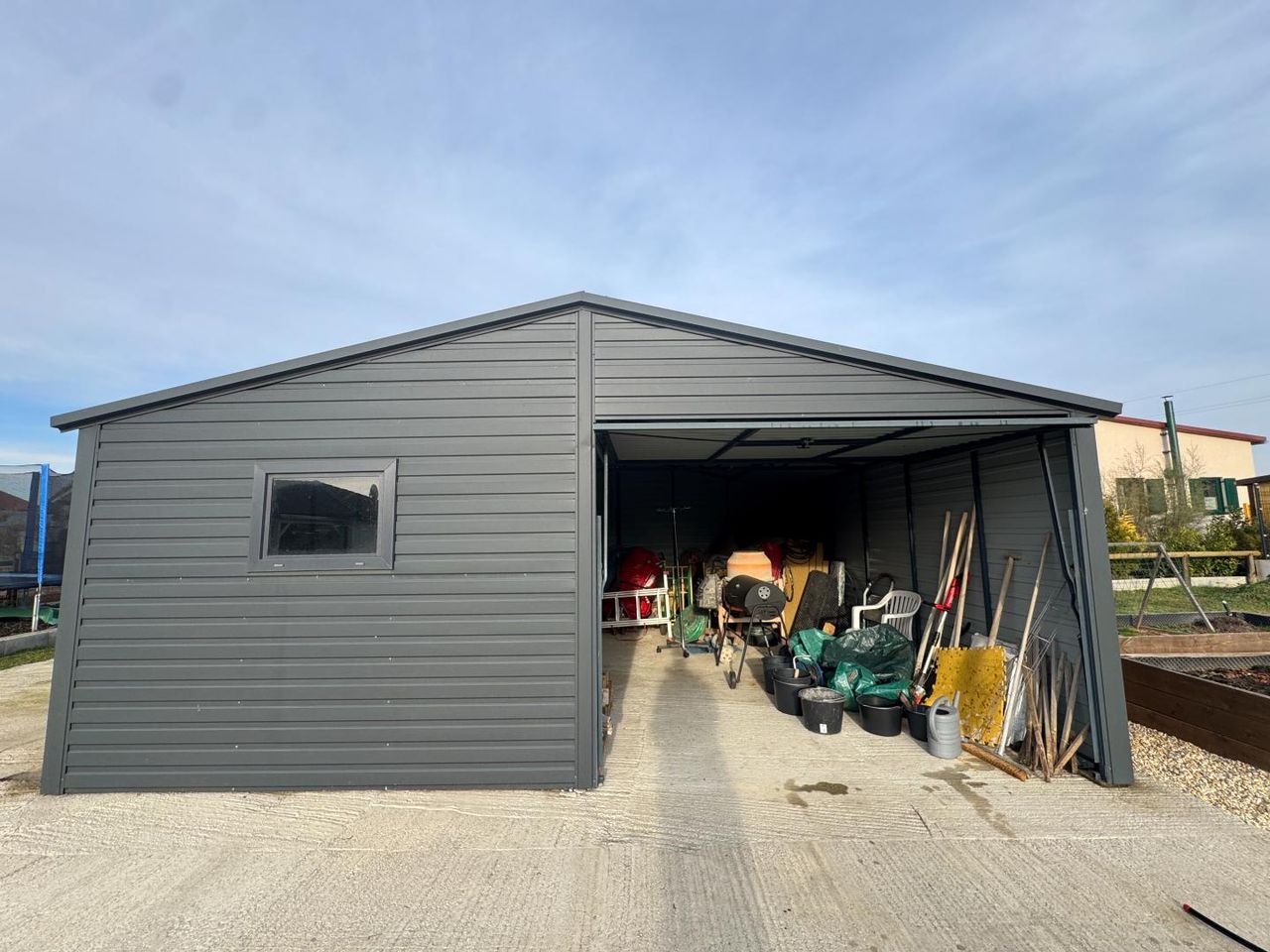 Der Garten bietet viel Platz zur Erholung und Freizeitgestaltung. Die weitläufige Grünfläche eignet sich perfekt für Familien, Hobbygärtner oder entspannte Stunden im Freien. Sehr praktisch ist die geräumige Gartenblechhütte, die Platz für alle Gartenutensilien bietet.