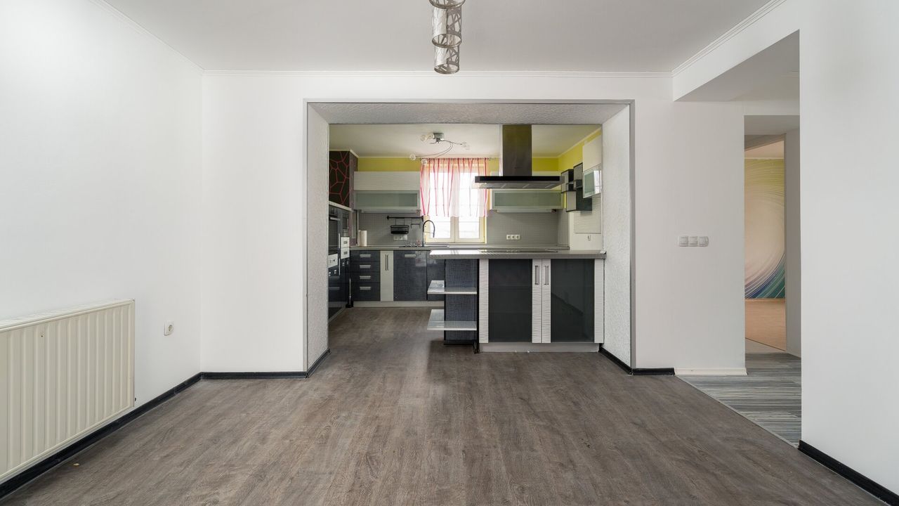 Die Wohnnutzfläche von rund 122 m² bietet eine funktionale Raumaufteilung. Über dem Eingangsbereich gelangen Sie in das Wohnzimmer mit Holzofen, welches eine gemütliche Wohnatmosphäre schafft. Weiters stehen ein Kabinett / Kinderzimmer, ein separates WC, ein Küchenbereich mit Esszimmer sowie ein Schlafzimmer mit angrenzendem Ankleideraum / Kabinett zur Verfügung. Ergänzt wird das Raumangebot durch ein Badezimmer mit Dusche und WC sowie einen Heizraum.