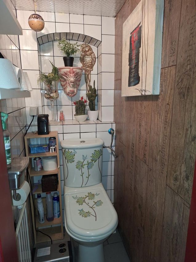 Dieses kreativ bearbeitete Haus wurde von den Besitzern liebevoll und farbenfroh gestaltet. Vor dem Haus sind ein Kräutergarten und ein überdachter Abstellplatz für einen PKW angelegt. Vom Vorraum gelangt man in die Küche und weiter, in die diversen Zimmer die Großteils mit Schlafgelegenheiten ausgestattet sind. Ein Bad mit Dusche und ein extra WC ist vorhanden. Im kleinen Garten ist eine überdachte Veranda, die zum gemütlichen Sitzen einlädt. Das Herz eines Modelleisenbahnfans muss hüpfen vor Freude, wenn er in einem Zimmer eine bis ins Detail ausgebaute Modelleisenbahn Anlage sieht. Die ehemalige Garage ist zu einem Arbeitsraum für Heimwerker und einem Holzlager...