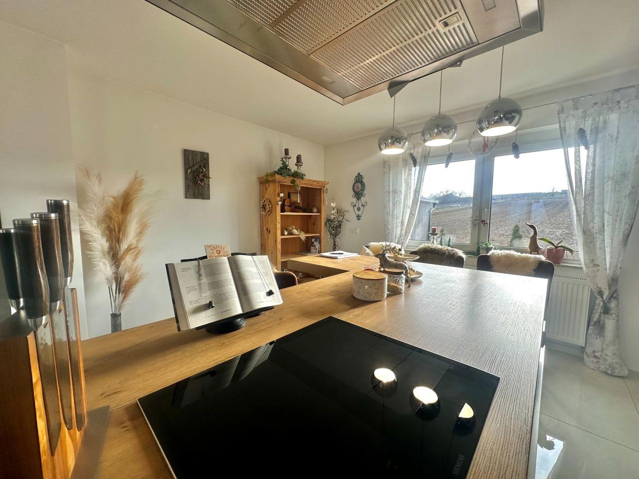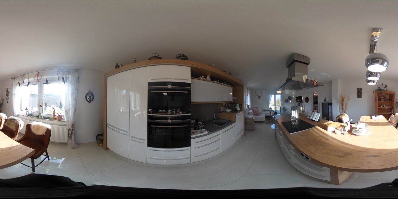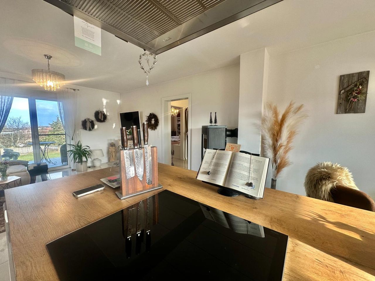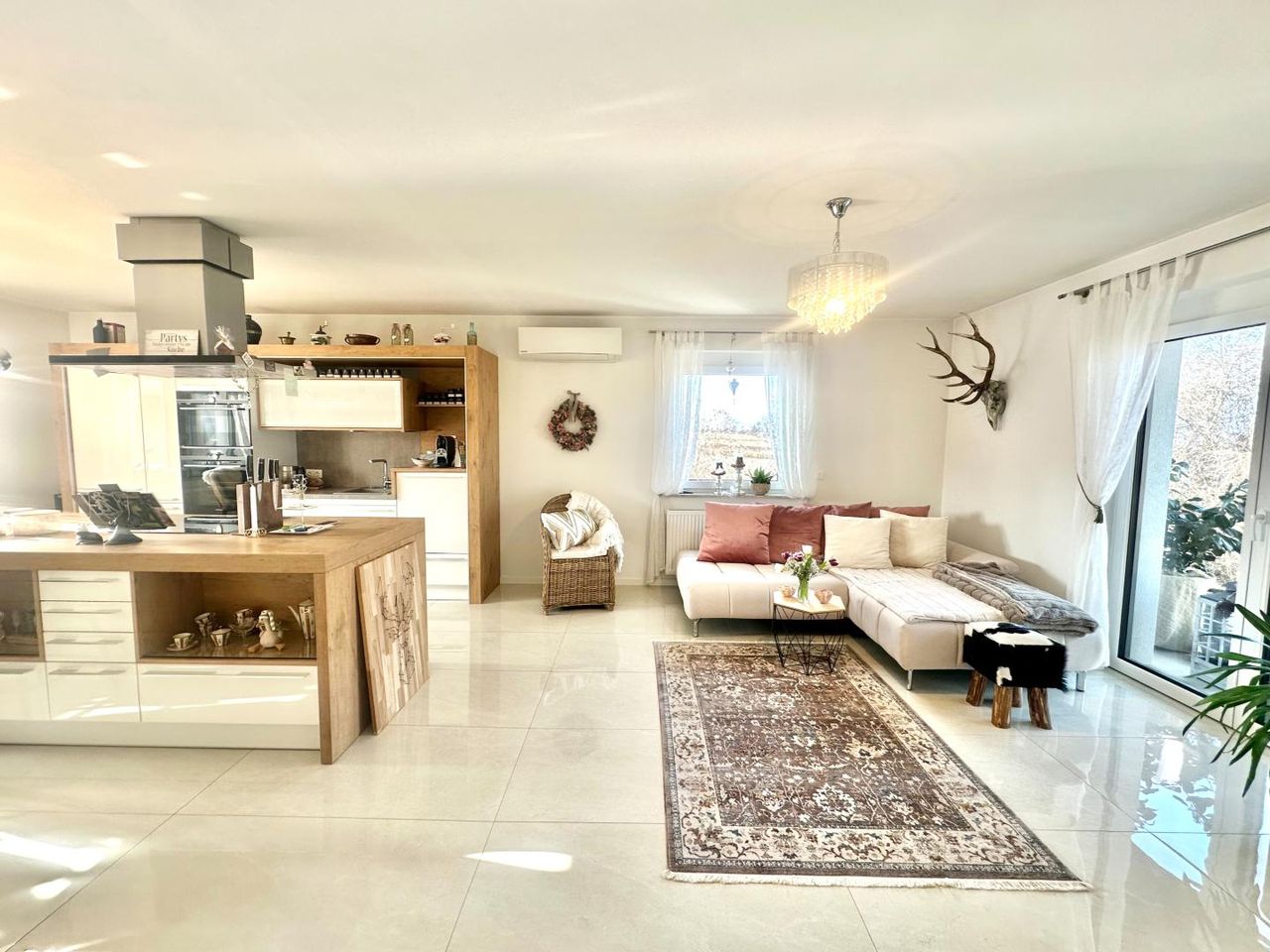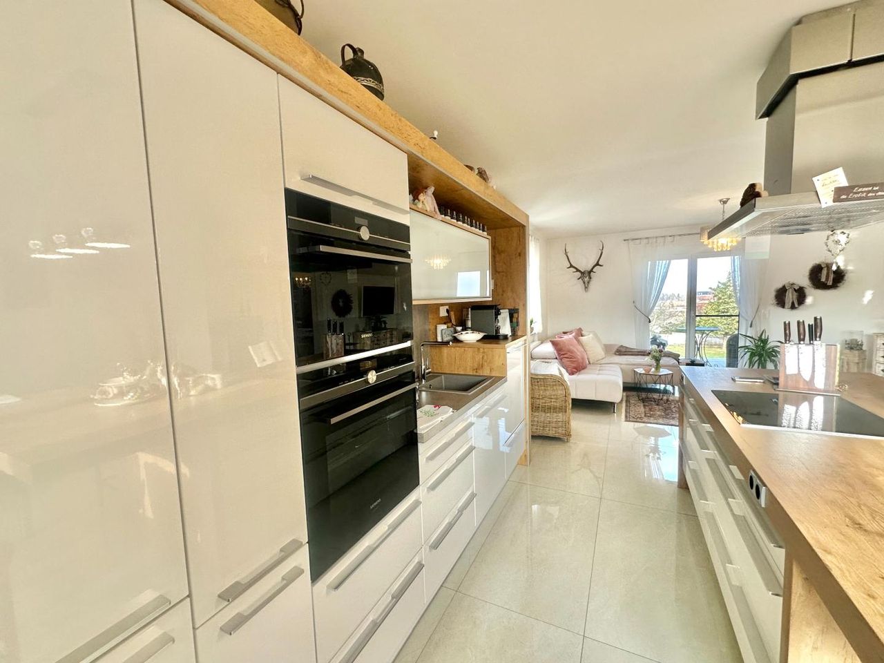 * Offene Wohnessküche mit Ausgang auf den Balkon