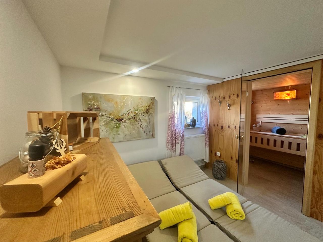 * Wellnessbereich mit Sauna und Badezimmer