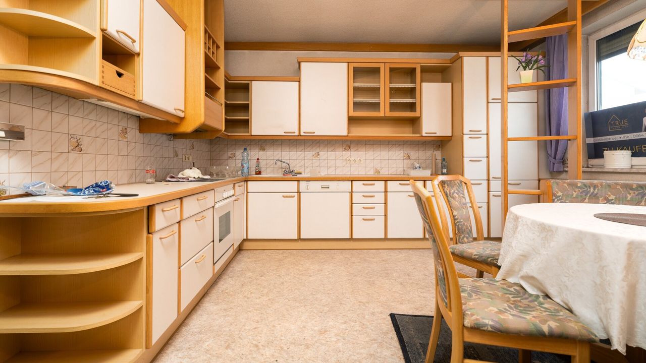 Über den Eingangsbereich gelangt man nicht nur in die Wohnräume, sondern auch direkt in den Keller, der mit insgesamt vier Räumen plus einem Heizraum überraschend viel Platz bietet. Dort befindet sich die Öl-Zentralheizung samt 1000-Liter-Tank – solide Technik, gut erreichbar und praktisch angeordnet.
