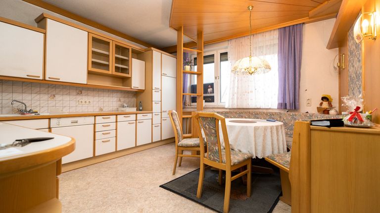 Die Fenster straßenseitig wurden bereits durch 3-fach Verglasung erneuert, auch diese sind schon in die Jahre gekommen, während im restlichen Haus noch 2-fach verglaste Holzfenster (Baujahr entsprechend) verbaut sind. Das Dach besteht aus Eternit.