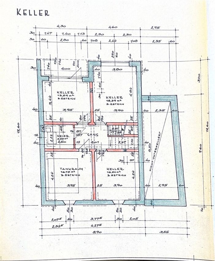 Keller - Stiegenberreich, 4 Räume, Heizraum, direkter Ausgang in den Garten