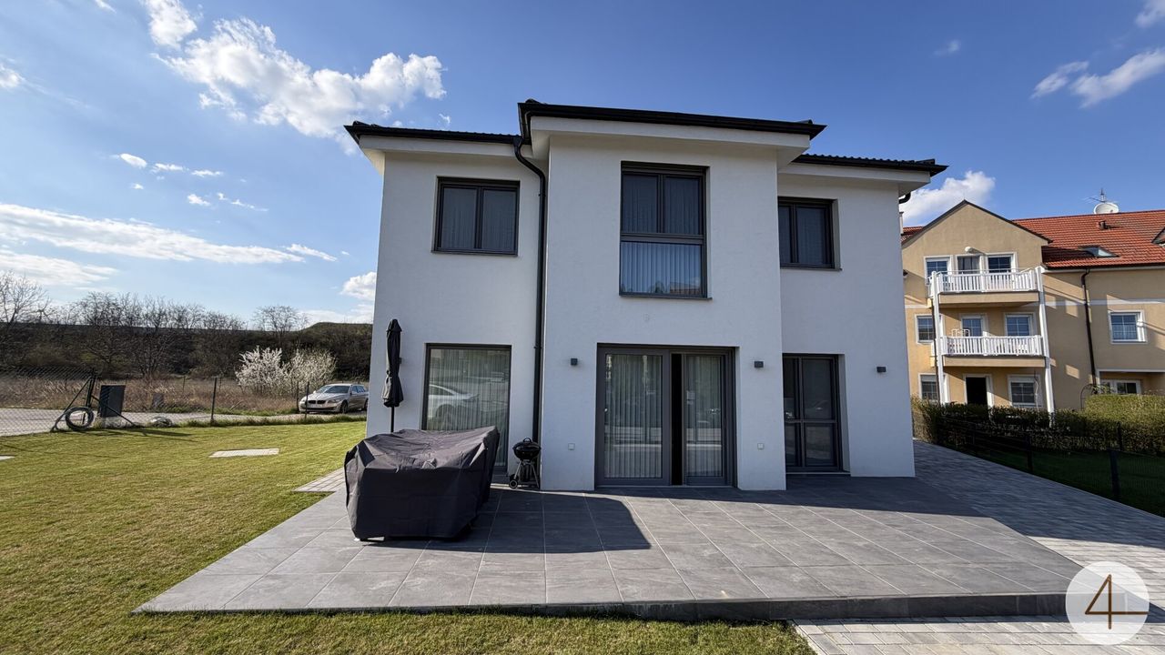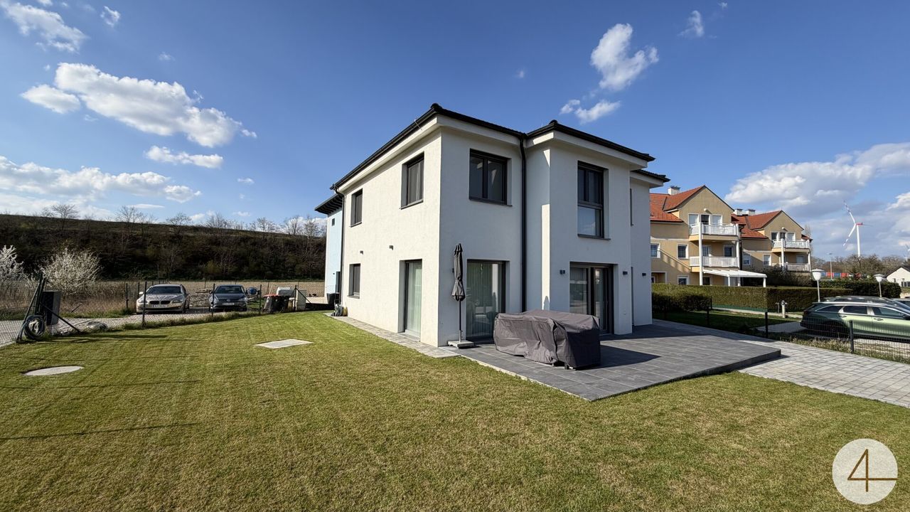 Dieses hochwertige Einfamilienhaus in Schrick vereint moderne Architektur, energieeffiziente Bauweise und durchdachten Wohnkomfort auf rund 141 m² Wohnfläche. Auf einem ca. 436 m² großen Grundstück bietet das 2022 errichtete Haus großzügige Raumverhältnisse mit insgesamt fünf Zimmern, drei Bädern, zwei WCs sowie einem praktischen Technikraum.